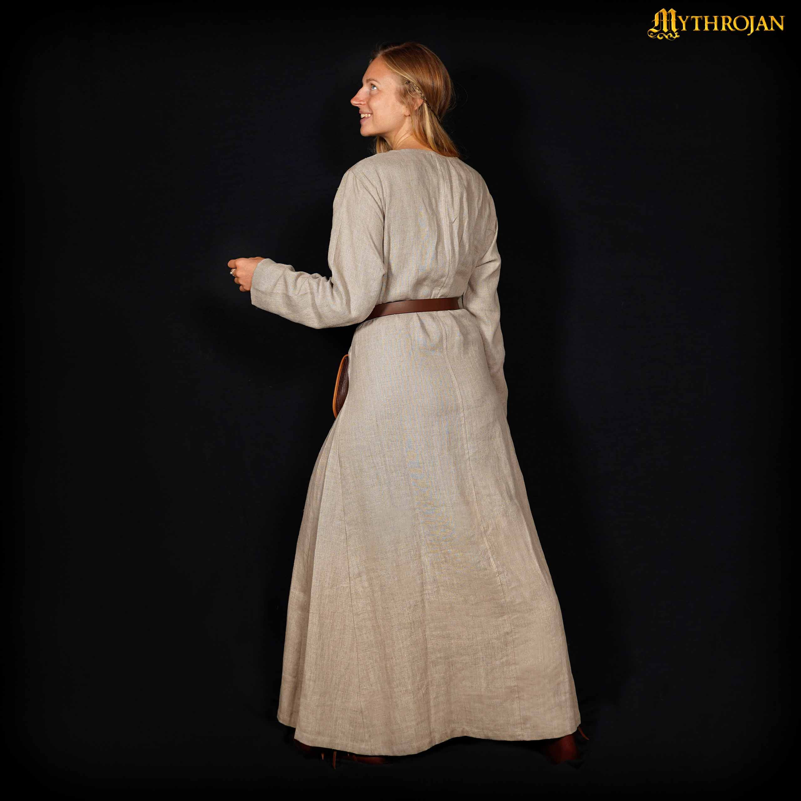 ¡Embárcate en una travesía vikinga con nuestro Vestido Vikingo para Mujer, modelo Helga, confeccionado en lino y en un elegante color natural!