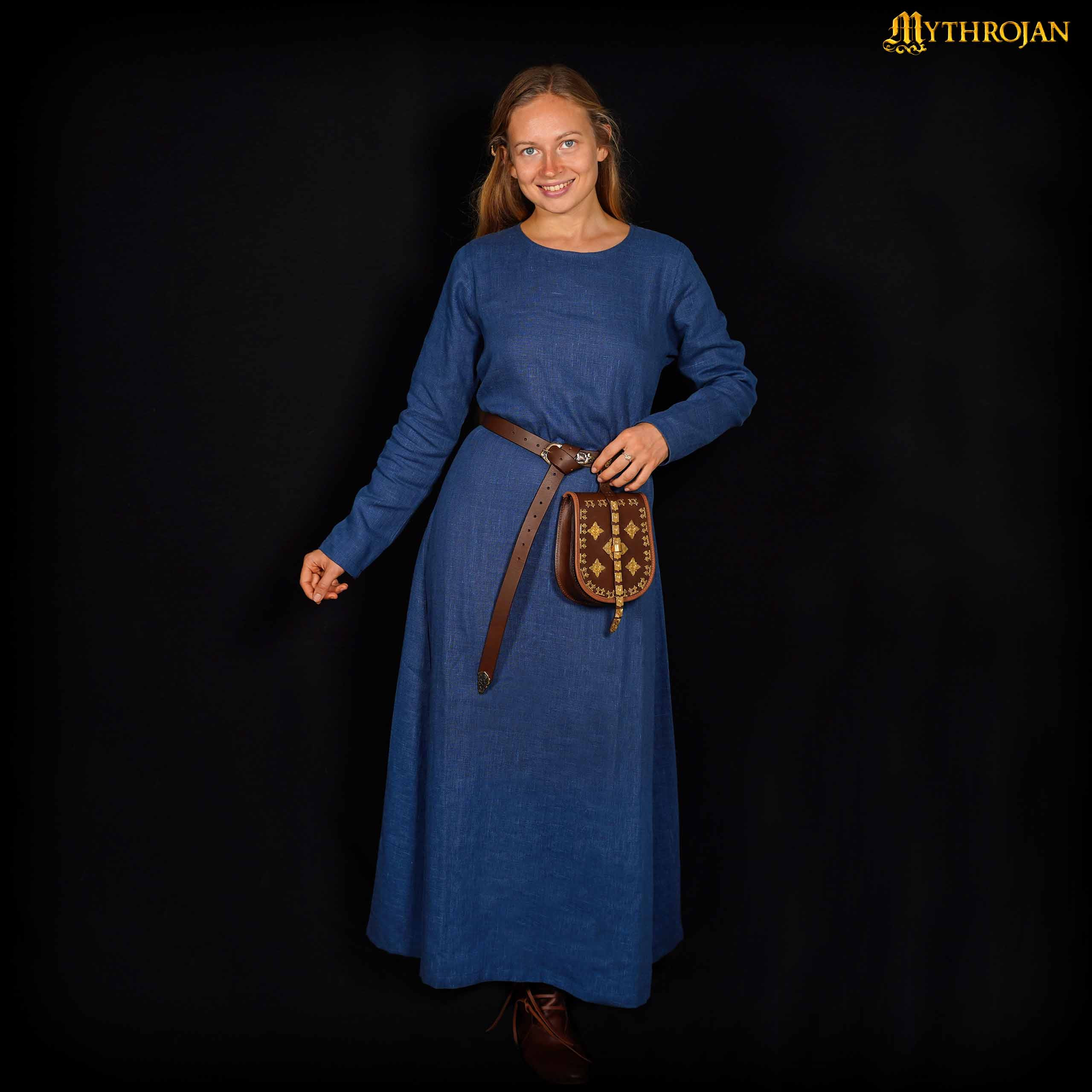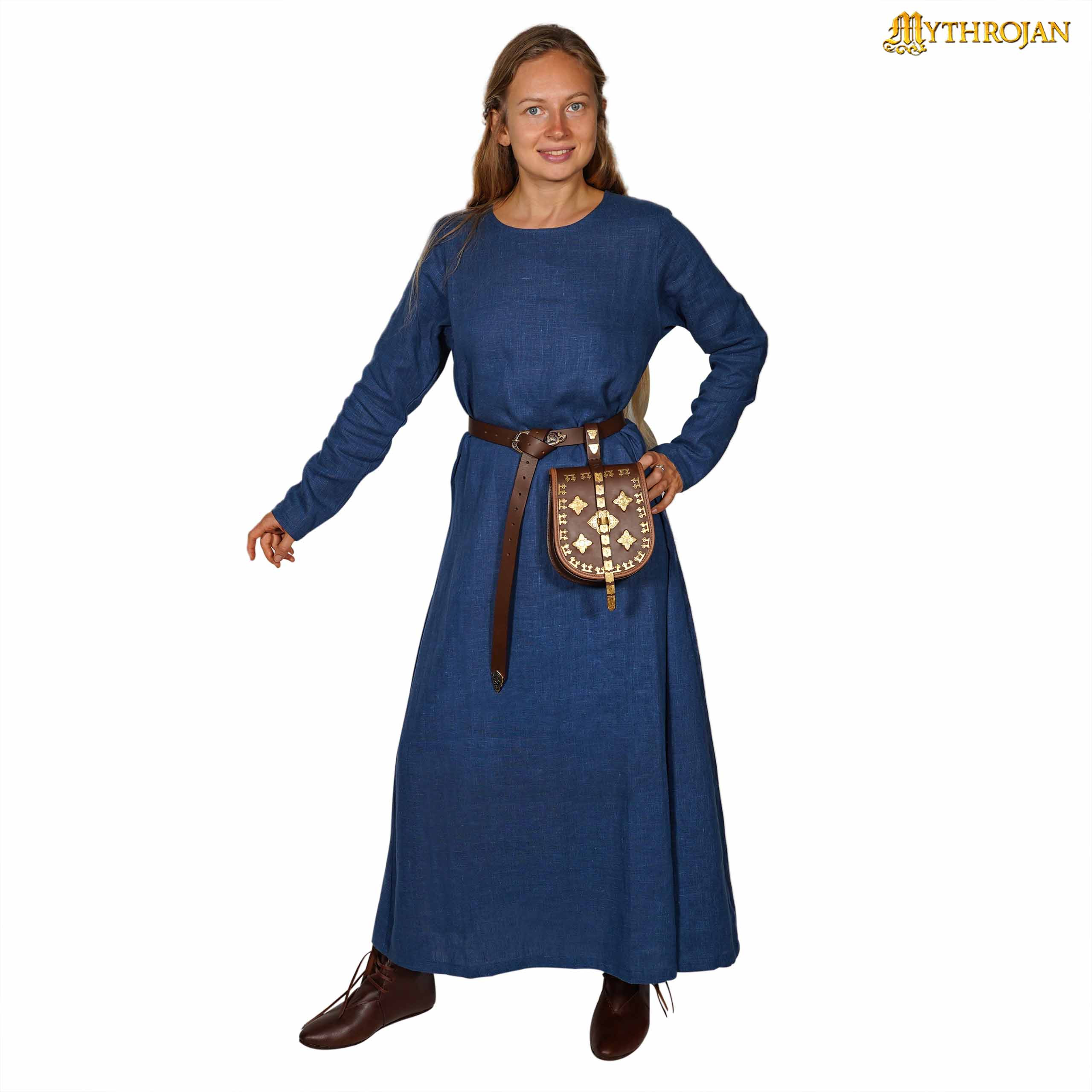 Adquiere el vestido vikingo de mujer modelo Helga en lino y color azul, y descubre cómo transforma tu guardarropa en algo verdaderamente único y especial. ¡Haz una declaración de estilo con Helga!
