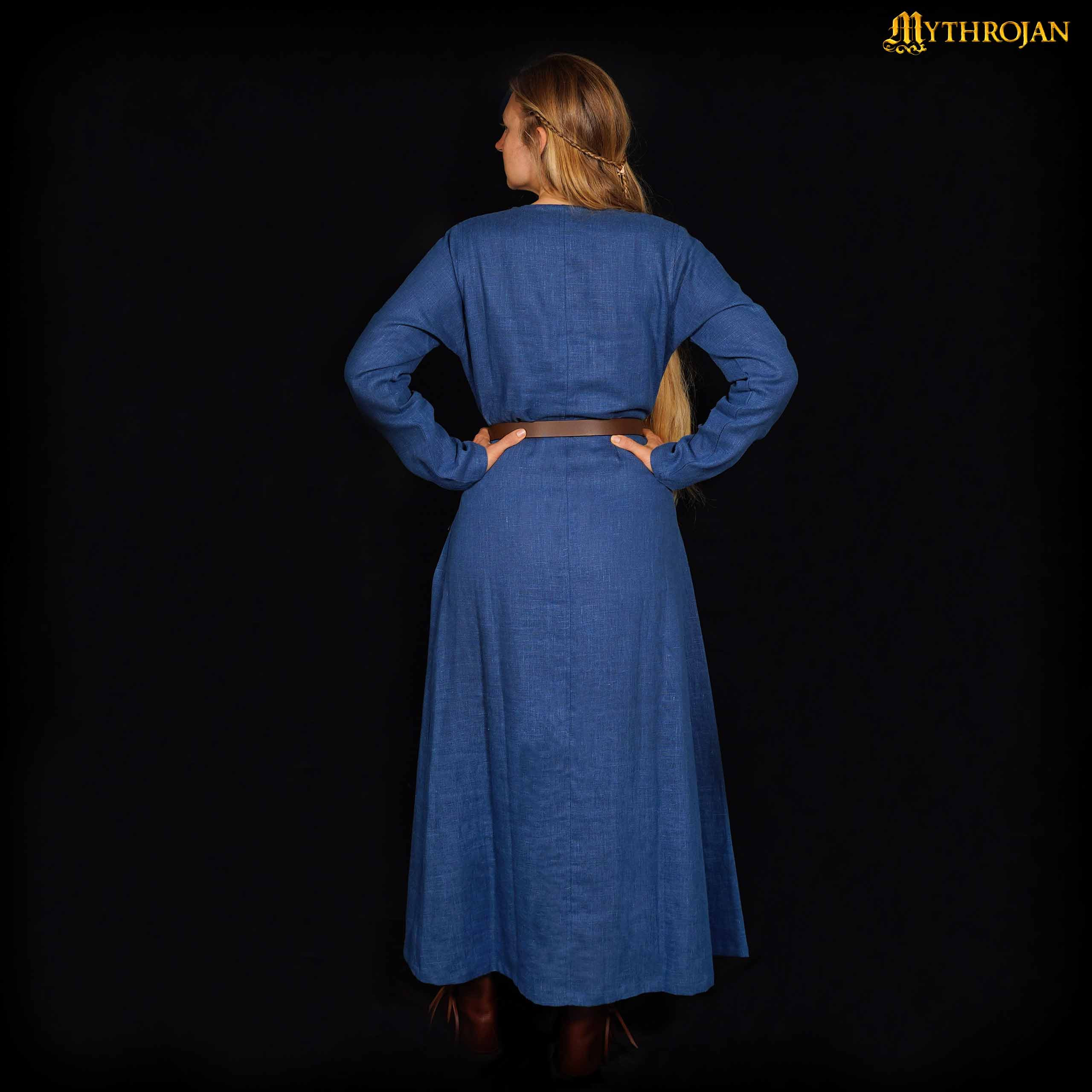 Vestido vikingo mujer lino modelo Helga, color azul