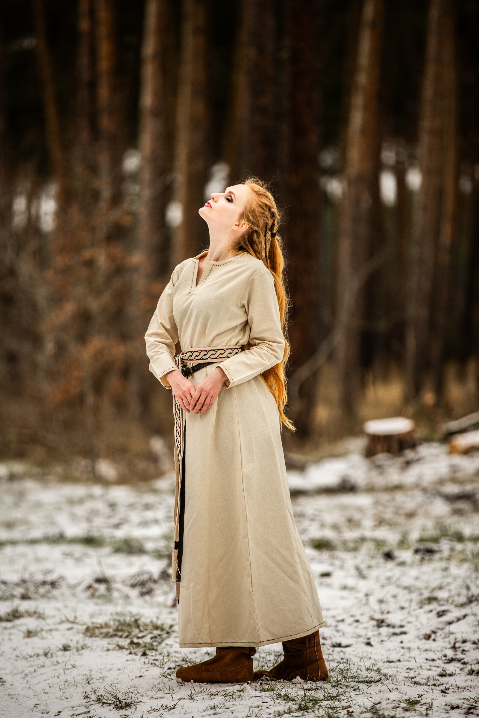 Imagina asistir a un mercado medieval o participar en un evento LARP, siendo el centro de todas las miradas. Helga es ese aliado ideal que se adapta a cada ocasión: puedes llevarlo solo para un look sencillo o complementarlo con un cinturón sutil que realce tu figura.