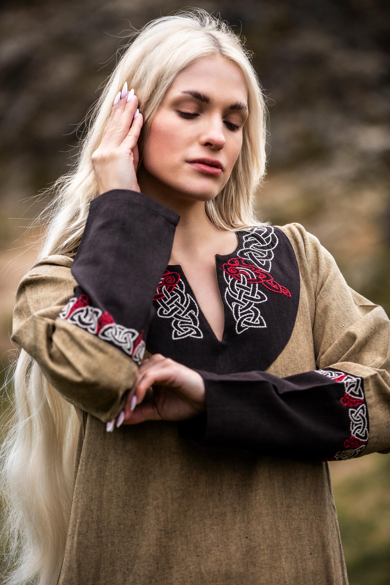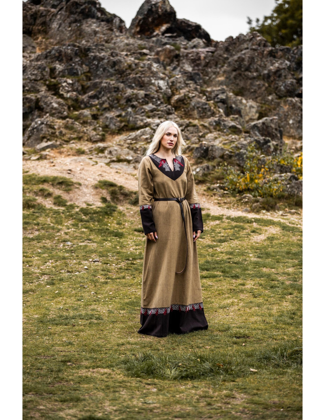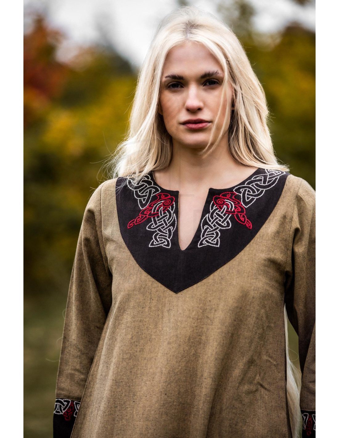 Vestido Vikingo Mujer modelo Idun con Bordados, beige