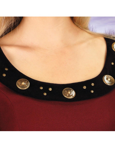 Sentirás un profundo deseo de aventurarte en los relatos de antaño, de ocupar ese lugar que la historia te reserva entre los que dejan huella. La voz interna que anhela autenticidad, que busca reflejar fuerza, valentía y una identidad que trasciende el tiempo, encuentra en un vestuario que cuenta historias y no solo cubre el cuerpo. Este vestido vikingo tradicional se convierte en tu vehículo hacia ese yo que siempre soñaste—fuerte, audaz y lleno de carácter. Con su tela de sarga de algodón en tonos de cielo griego, te abraza una textura que invita a la acción y a la conexión con raíces ancestrales. Cada botón de madera, cada dobladillo cuidadosamente elaborado, potencia esa sensación de pertenencia, como si fueras una guerrera de leyenda en medio de un mundo que anhela ese espíritu indomable. La incorporación del delantal gris y el cinturón de cuero no solo adornan, sino que realzan esa parte tuya que busca ser vista y reconocida por tu fuerza y elegancia natural. El algodón de alta calidad no solo garantiza durabilidad, sino que provoca una sensación de confort que te acompaña en cada paso de esa aventura que deseas vivir. Este Armamento Cultural, producido por Windlass Steel Crafts, no es solo ropa, sino un símbolo de tu transformación — una forma de comunicar, sin palabras, que tú también eres historia en movimiento.
