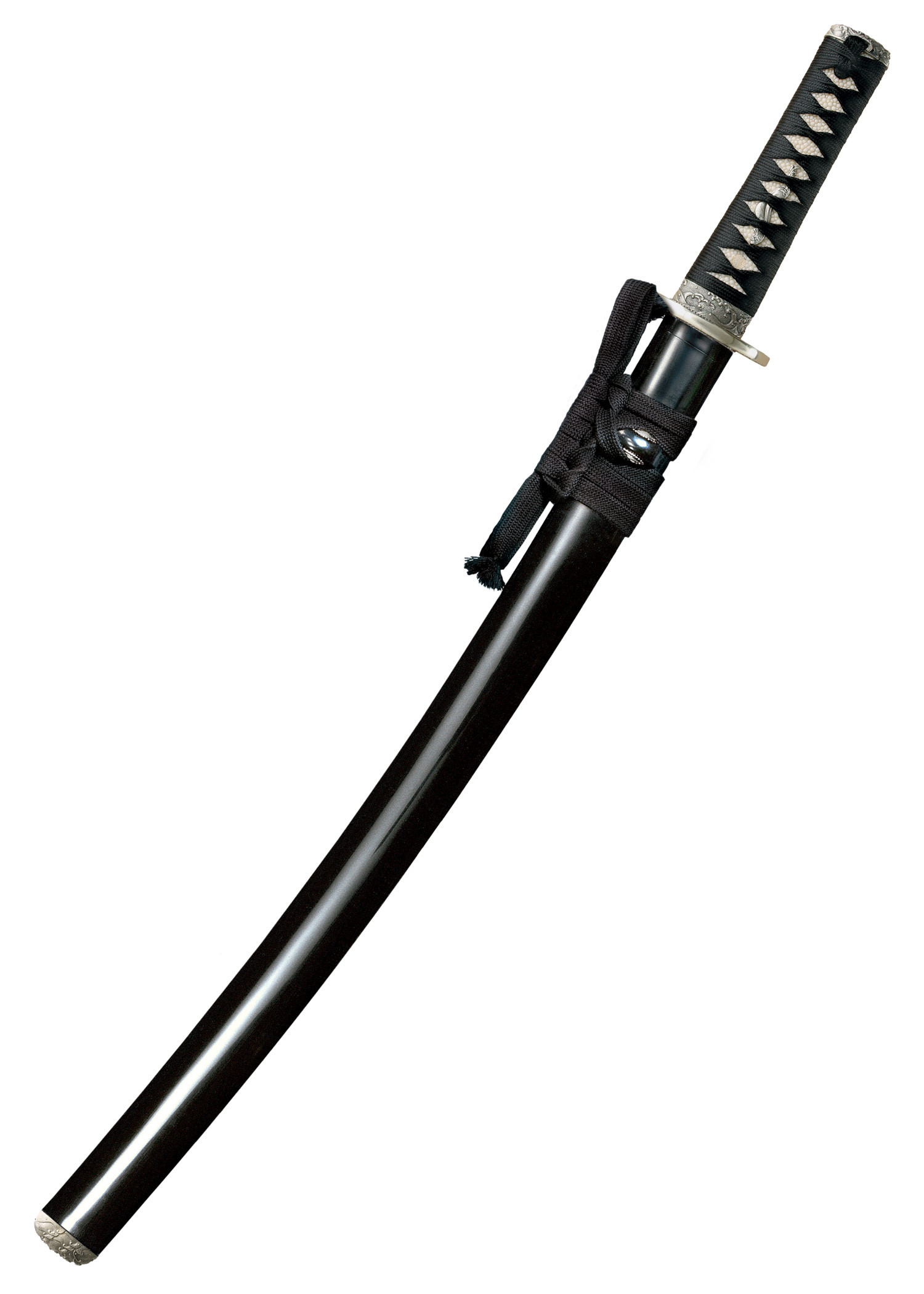 - Materiales tradicionales de alta calidad: Cold Steel utiliza solo materiales tradicionales para la Tsuba (guarda), Fuchi (collar) y Kashira (pomo), cada uno elaborado expertamente en níquel-plata para garantizar una calidad excepcional y una apariencia impresionante.