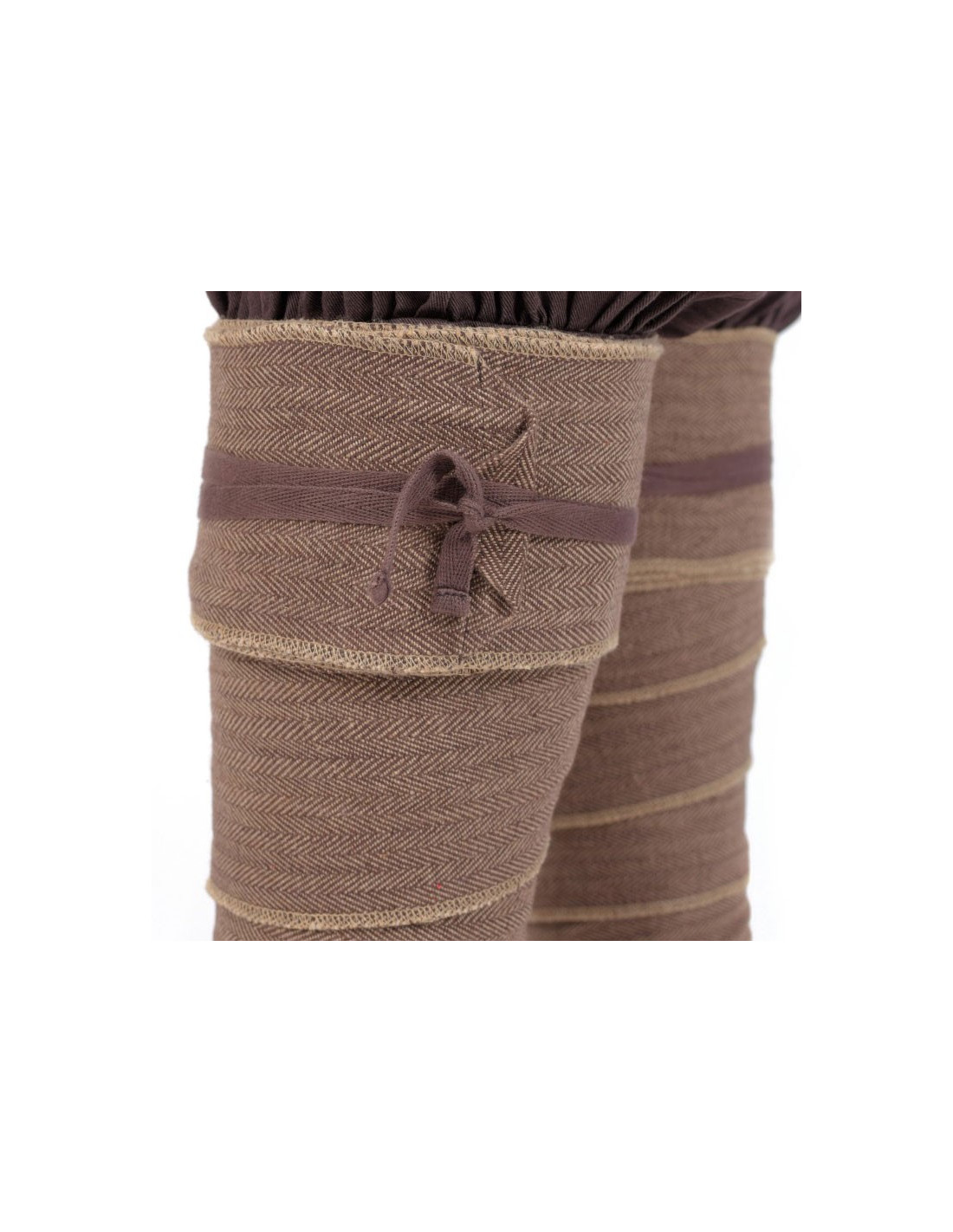 Protege tus piernas con estilo gracias a estos calentadores medievales. Su diseño cubre desde la rodilla hasta el tobillo, brindándote una protección adicional y manteniendo tus piernas abrigadas en todo momento. Perfectas para esos días fríos de invierno o para complementar tu vestimenta en eventos temáticos.