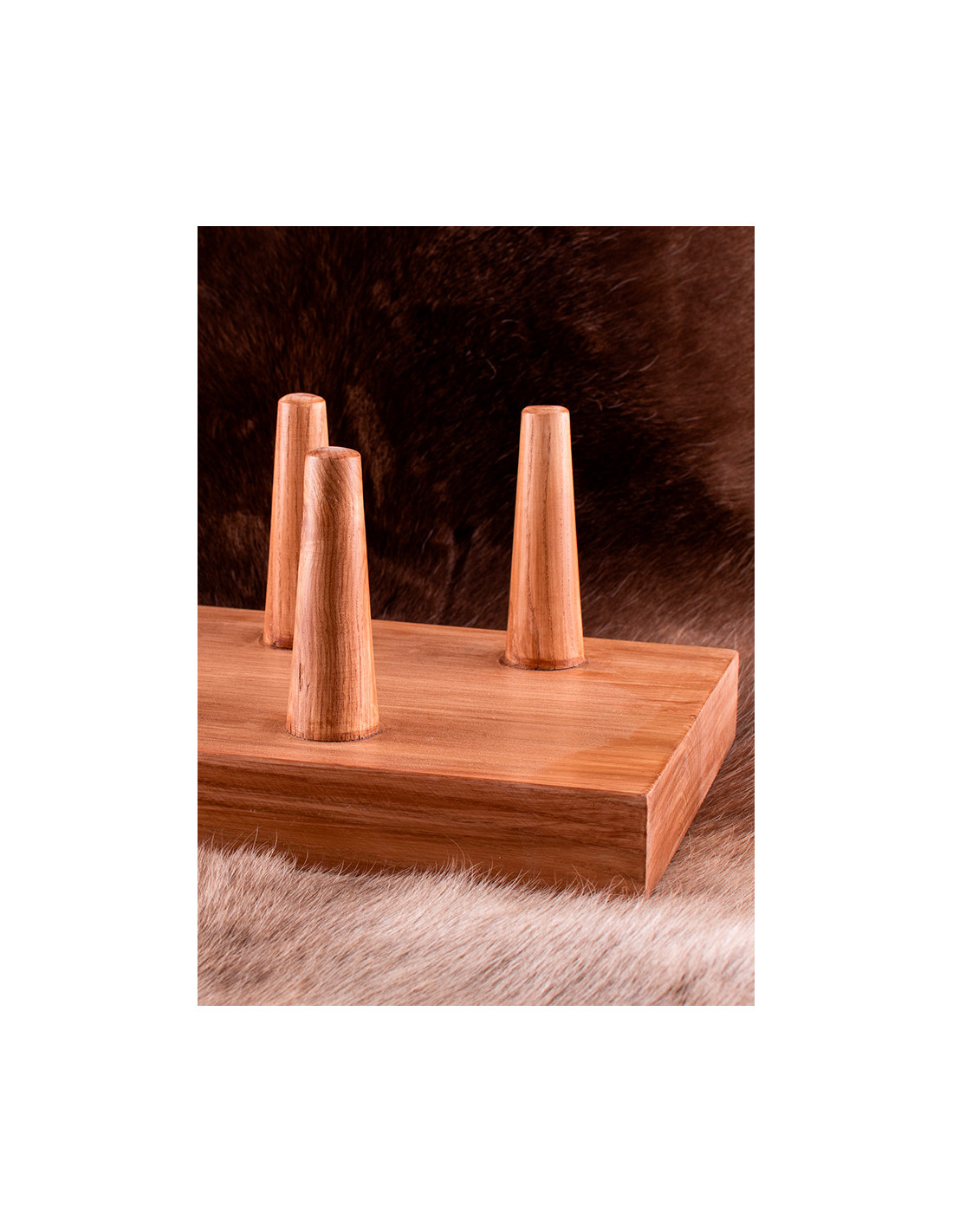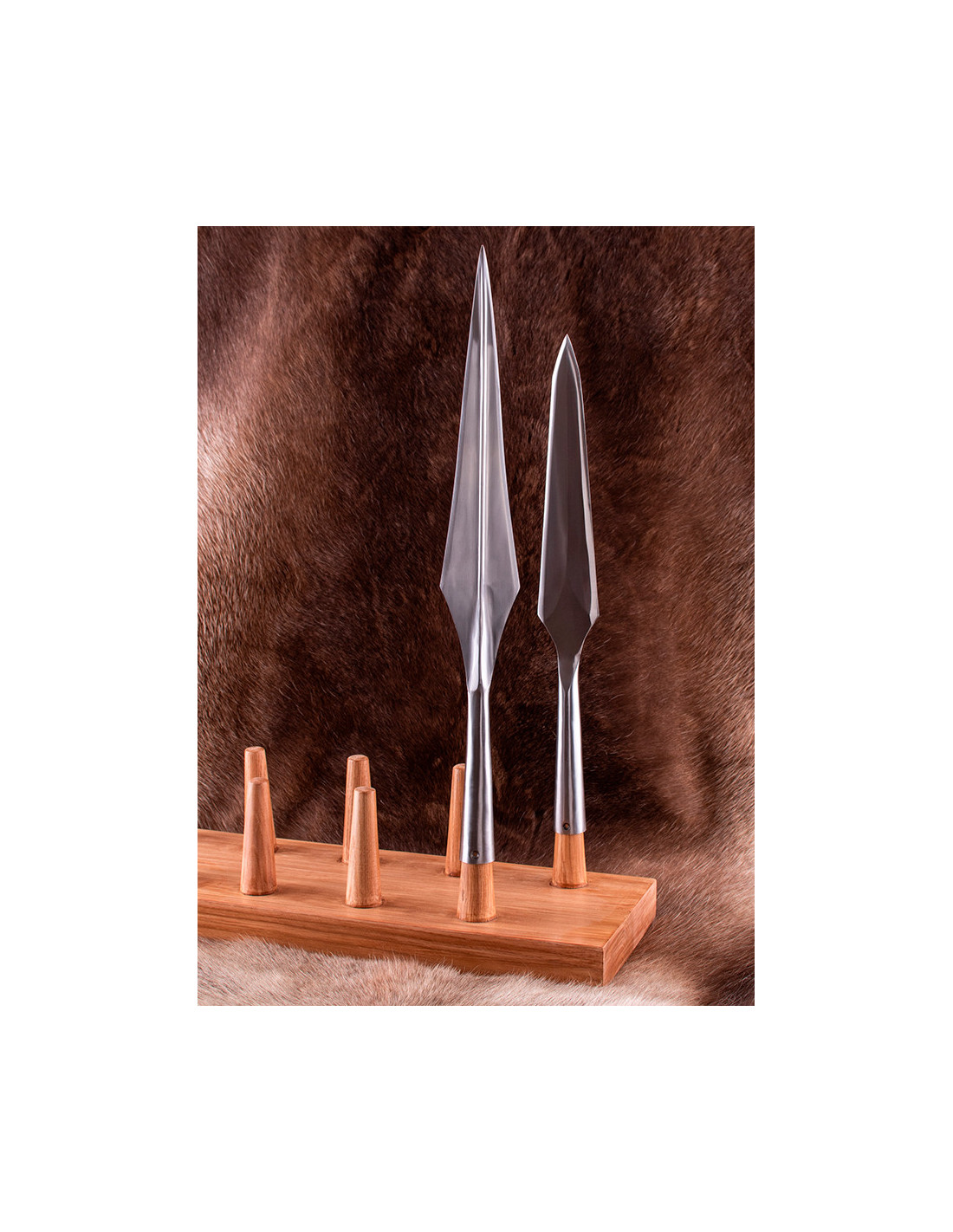 Naast zijn functionaliteit en weerstand valt deze houten display op door zijn hoogte van 14,5 cm en zijn gewicht van 4,8 kg. Dit garandeert een perfecte stabiliteit en balans, vermijdt ongewenste bewegingen en biedt de nodige veiligheid om met vertrouwen uw speerpunten te tonen.