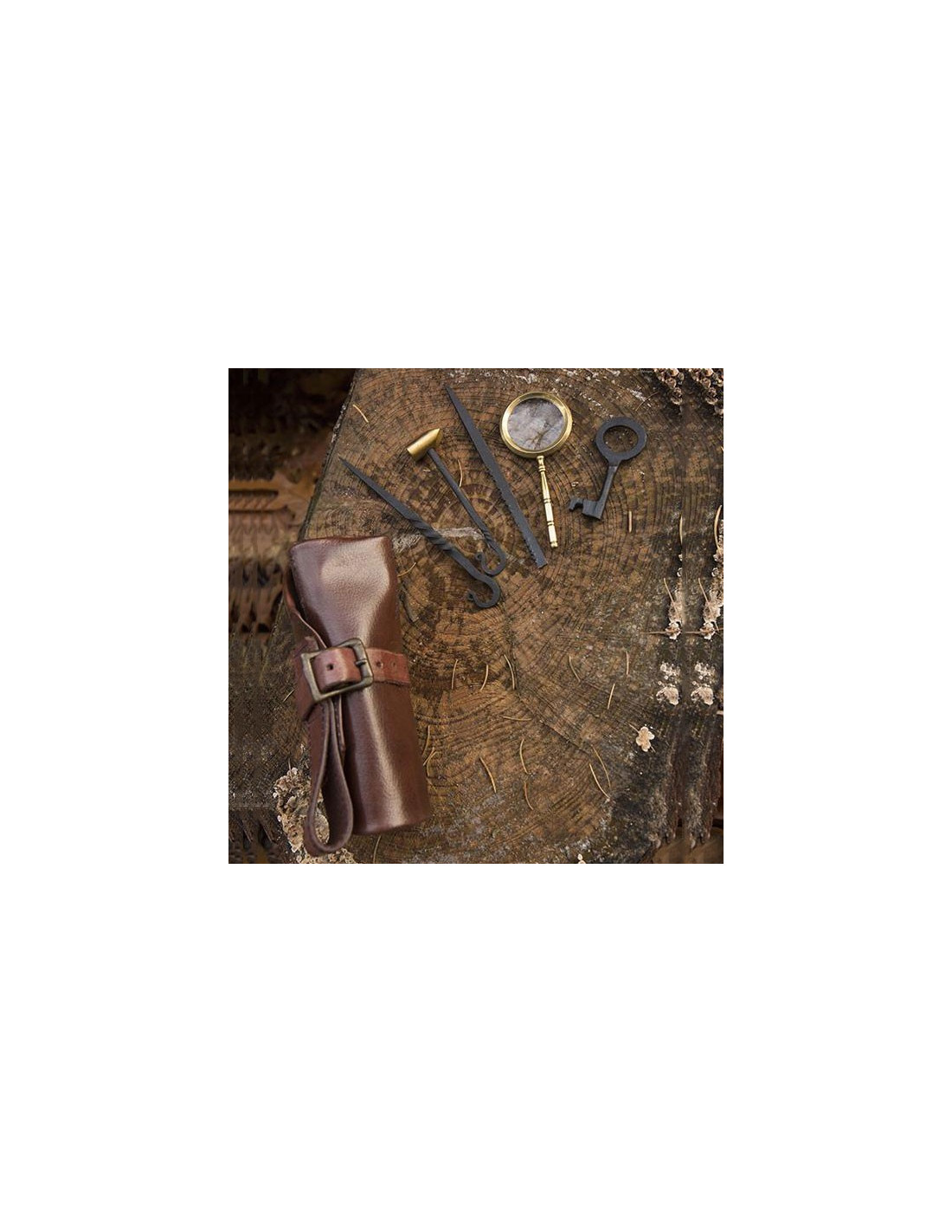 Een van de meest opvallende voordelen van de Kitt-gereedschappen voor middeleeuwse dieven is de bruikbaarheid ervan. Ze bevatten een lederen schede met een gesp om te sluiten, zodat u ze veilig en discreet aan uw riem kunt dragen. Zo heb je ze altijd bij de hand wanneer je ze nodig hebt, zonder dat je je zorgen hoeft te maken over transport of opslag.