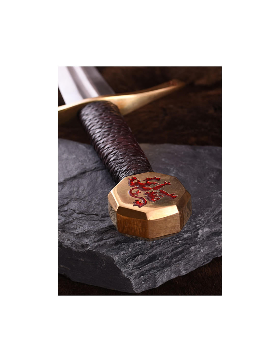 Als je een liefhebber bent van historische heropvoeringen of gewoon een stukje Schotse geschiedenis wilt bezitten, dan is dit zwaard perfect voor jou. Mis de kans niet om dit unieke stuk te verwerven dat je meeneemt naar de tijd van ridders en epische veldslagen. Koop nu het zwaard van Robert I van Schotland en voeg een vleugje authenticiteit toe aan je collectie!