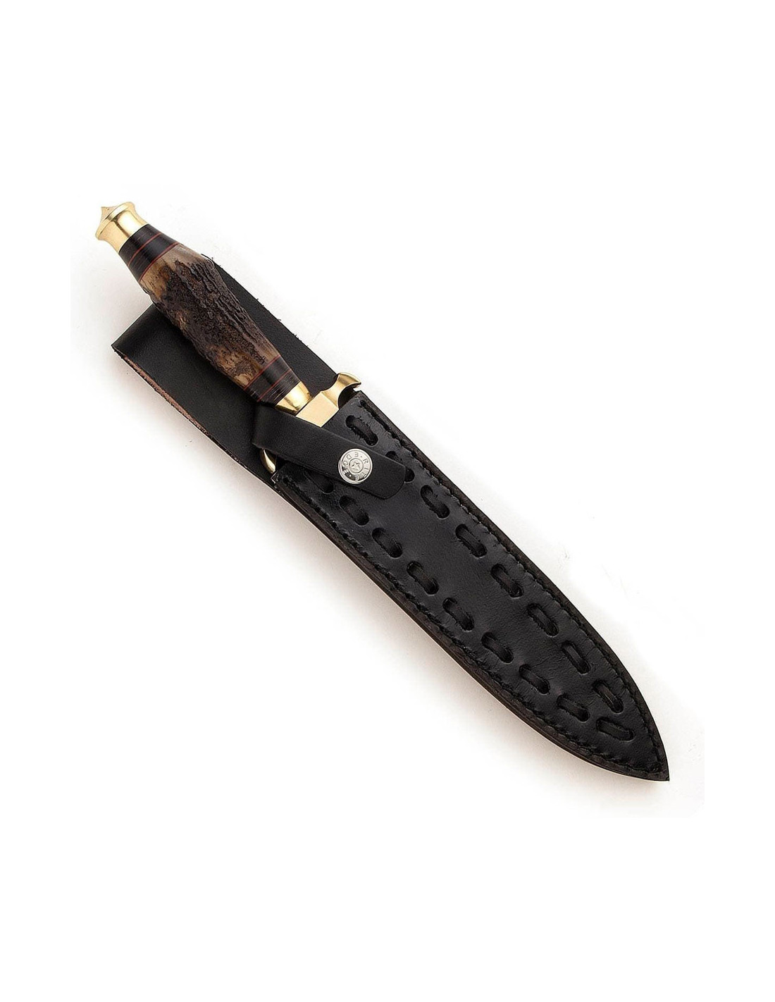 Een van de meest opvallende kenmerken van deze dolk is de hertshoorngreep, die hem een nog authentiekere en originelere uitstraling geeft. Het is vermeldenswaard dat, aangezien het een natuurlijk product is, elke mango verschillen kan vertonen in uiterlijk en kleur, wat hem exclusiviteit en persoonlijkheid geeft.