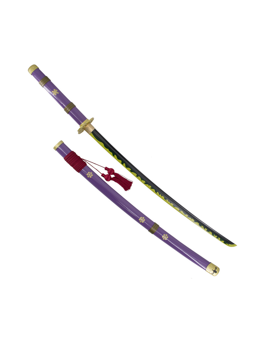 De klapper in klavervorm en de donkere schede voegen elegantie toe aan het zwaard. Bovendien werd de tsuka paars vanaf hoofdstuk 972 en volume 96, waardoor het een trouw replica is dat het verhaal weerspiegelt en je het gevoel geeft onderdeel te zijn van het avontuur van One Piece.
