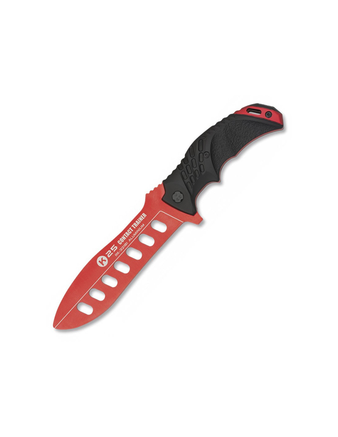 Ben je op zoek naar een hoogwaardig trainingsmes om je vechtkunsten of zelfverdedigingsvaardigheden te verbeteren, dan is het K25 trainingsmes perfect voor jou! Met een rood aluminium lemmet van 15 cm en een totale lengte van 27,7 cm is dit mes de perfecte metgezel voor je training.
