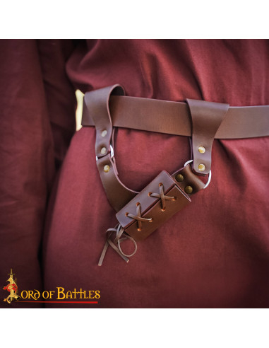Verstelbare middeleeuwse riemhouder in bruine leer voor zwaarden