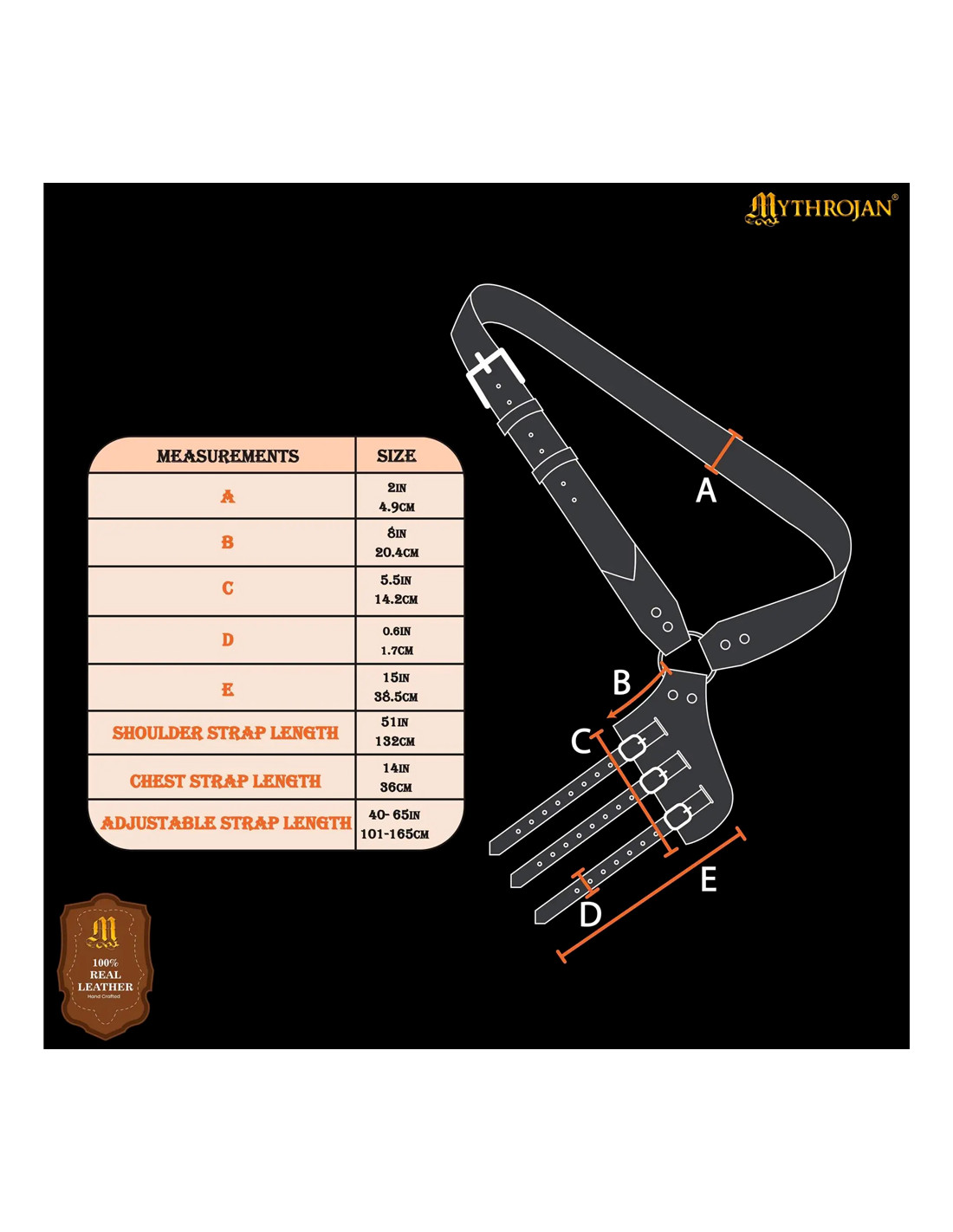 Hoewel veel middeleeuwse accessoires comfort opofferen voor uiterlijk, vindt dit harnas de perfecte balans door snelle en veilige toegang tot je zwaard of dolk te bieden. Elke naad is zorgvuldig afgewerkt, wat zorgt voor duurzaamheid en een ambachtelijke uitstraling die bewondering en bewondering zal oogsten.