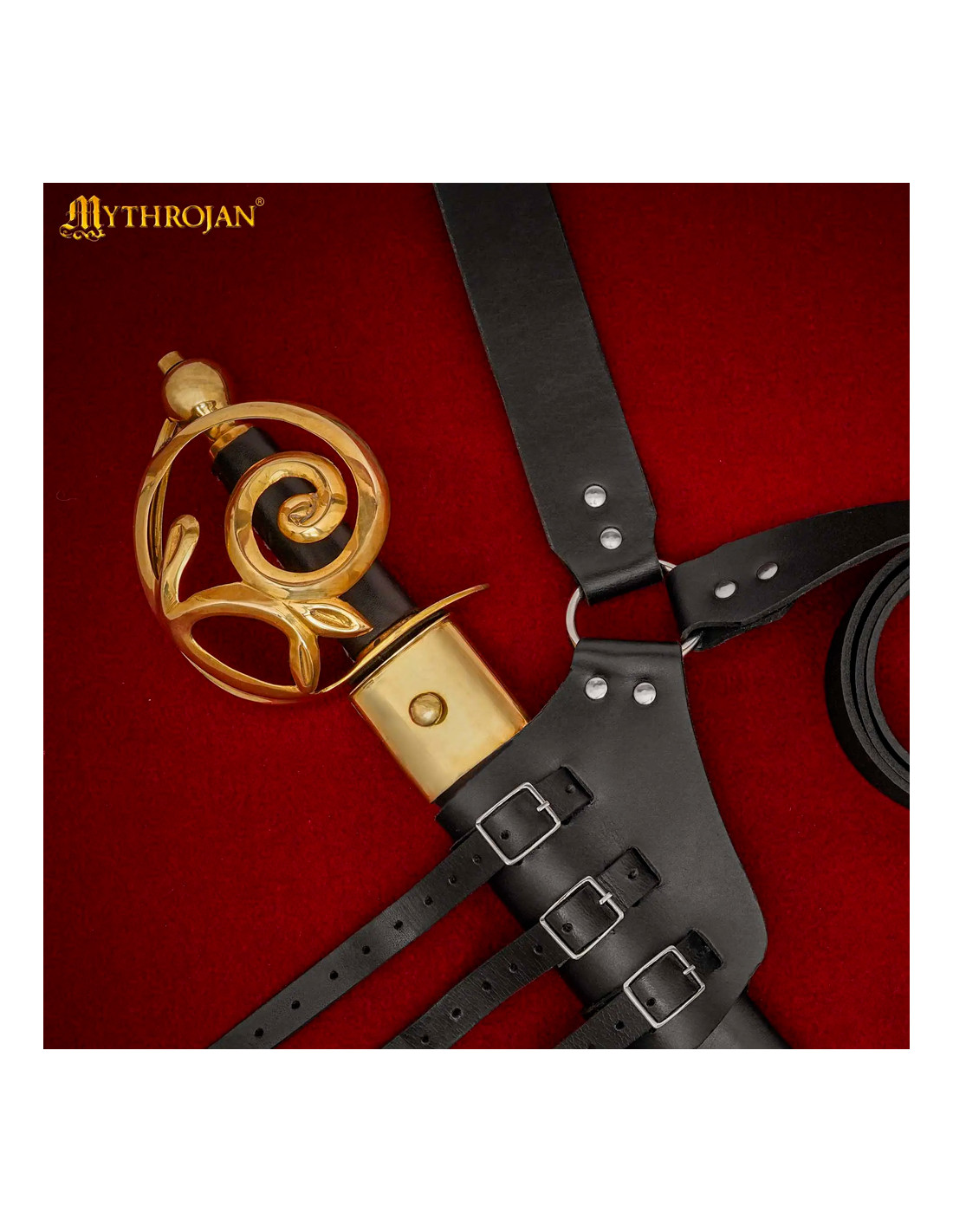 Met de hand gemaakt van hoogwaardig leer, is hij niet alleen duurzaam genoeg om intensief gebruik te weerstaan, maar geeft hij ook een elegante touch aan elke middeleeuwse outfit. De diepe zwarte afwerking benadrukt de klassieke uitstraling, waardoor elke combinatie, van tunieken tot harnassen, veel authentieker en verzorgder lijkt.