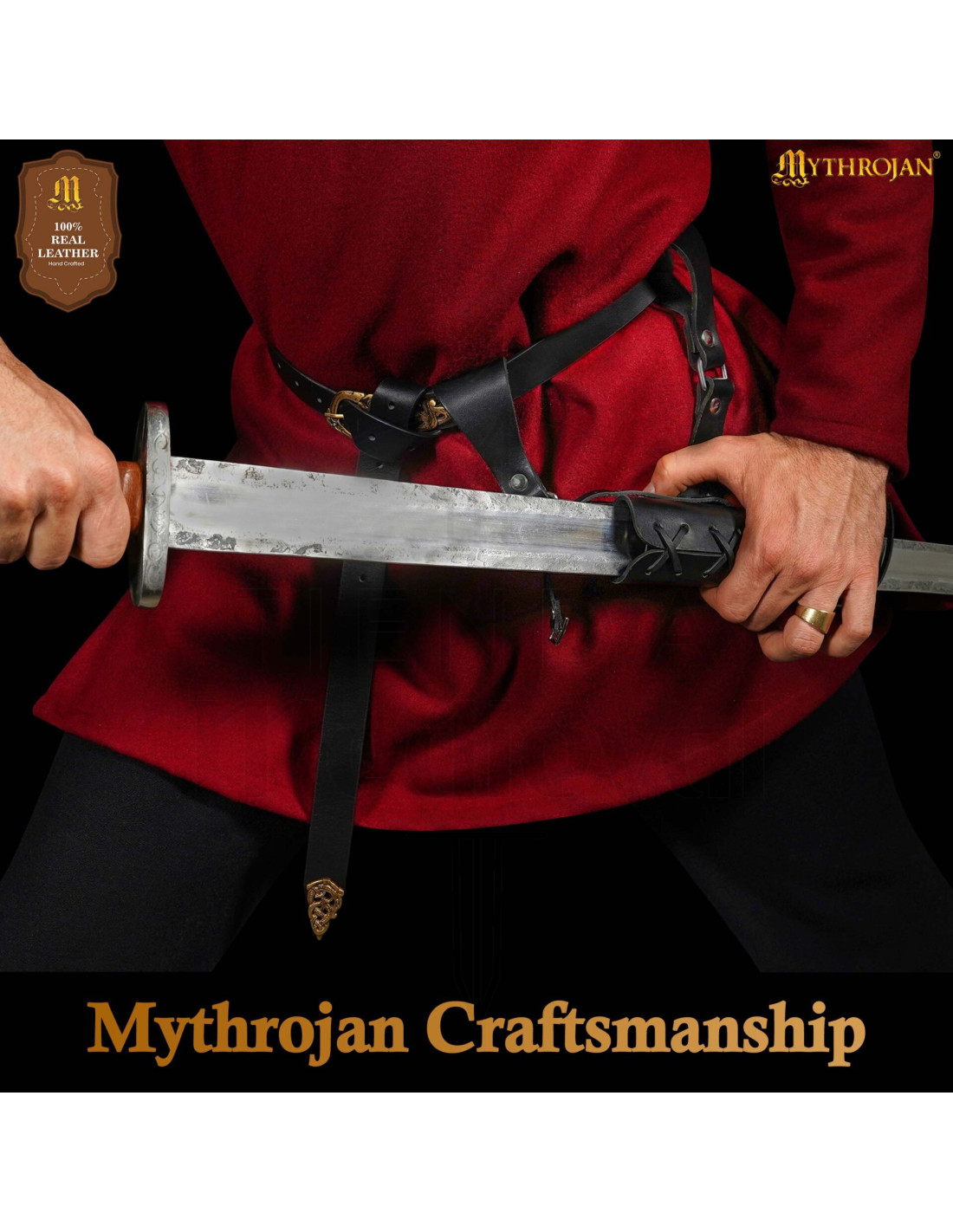 Het handmatig gekleurde werk geeft een onderscheidende en elegante uitstraling, waardoor elk heupholster uniek is. De structuur met gevlochten patronen aan de voorkant, gecombineerd met stalen riemen en gespen, geeft het een stijl die doet denken aan middeleeuwse of fantasie-omgevingen, perfect voor rollenspellen, verkleedkleding of verzamelingen.