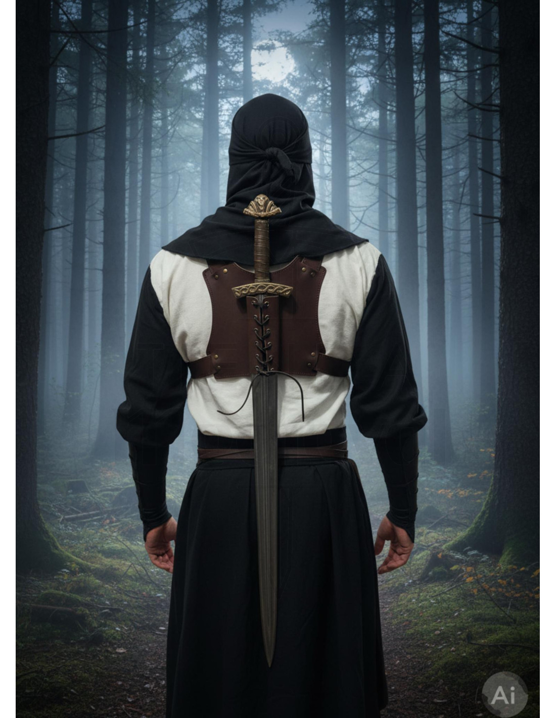 De ninja-esthetiek van het ontwerp accentueert de silhouet en maakt het mogelijk om het zwaard op de rug te dragen zonder bewegingen en uitrusting te belemmeren, ideaal voor wie waarde hecht aan de balans tussen functionaliteit en authentiek uiterlijk.