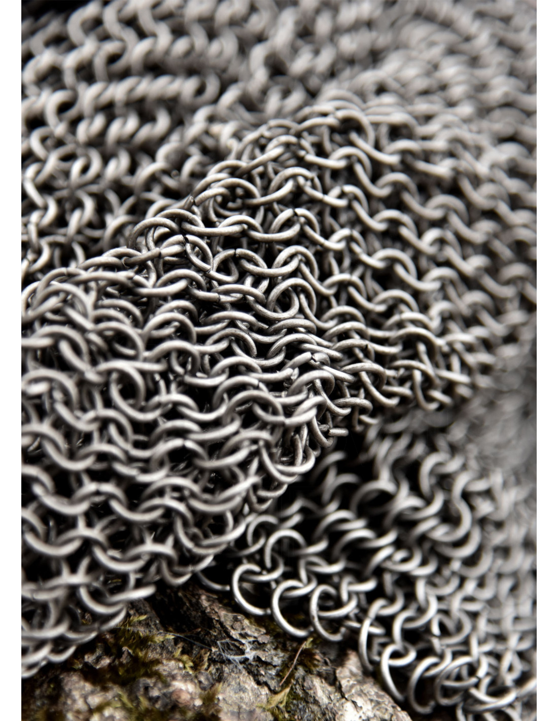 Gemaakt van hoogwaardige stalen ringen met een natuurlijke afwerking, behoudt het die patina die visuele authenticiteit toevoegt, terwijl het 4-in-1 weefsel zorgt voor een stevige en duurzame structuur die schokken kan absorberen. Dit type BTW-mesh, gebouwd met gesloten draadspanning, is ideaal voor beginners in historische recreatie die op zoek zijn naar een betrouwbare pantser zonder het budget te overschrijden.