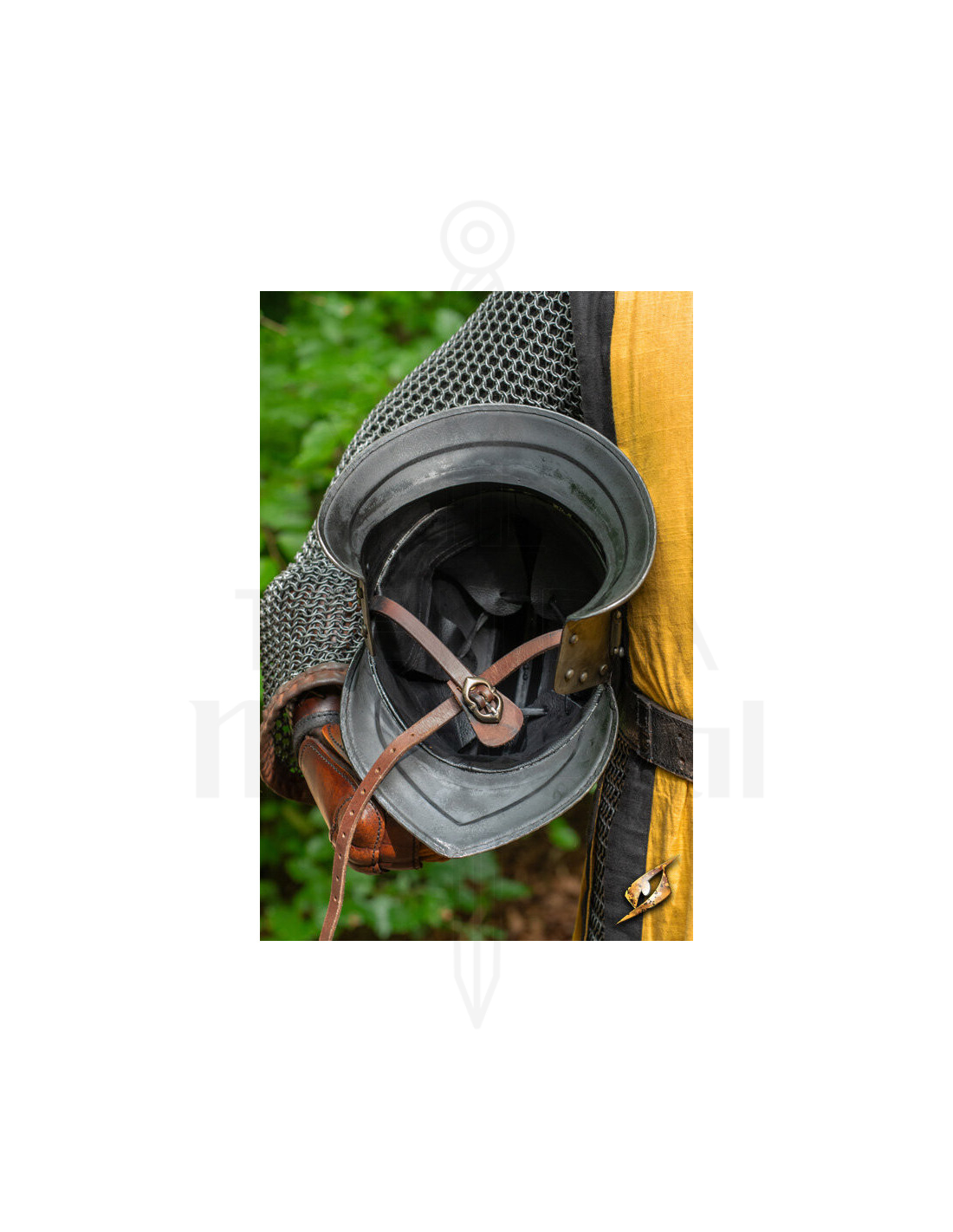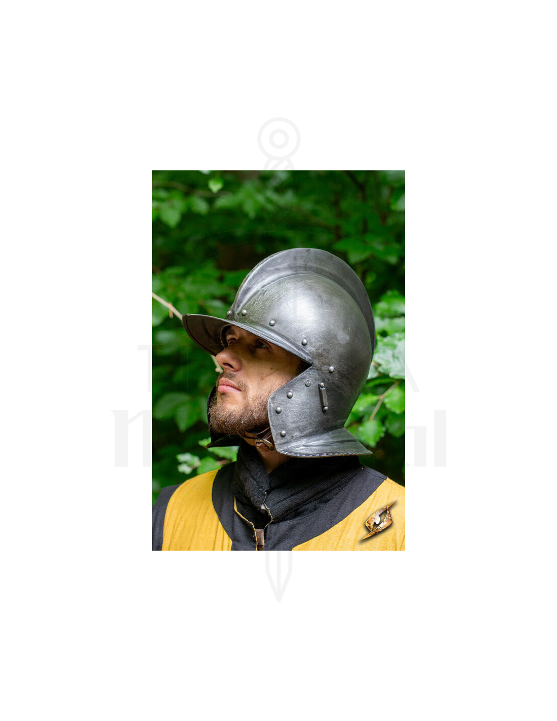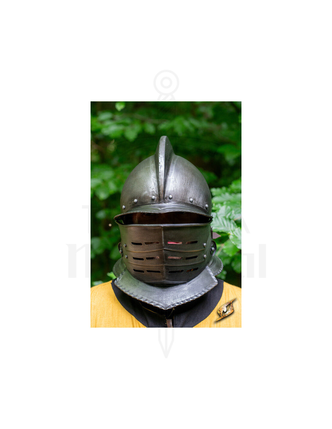 Perfect voor wie wil opvallen op middeleeuwse markten of historische evenementen, combineert deze helm functionaliteit met een klassiek en opvallend ontwerp.