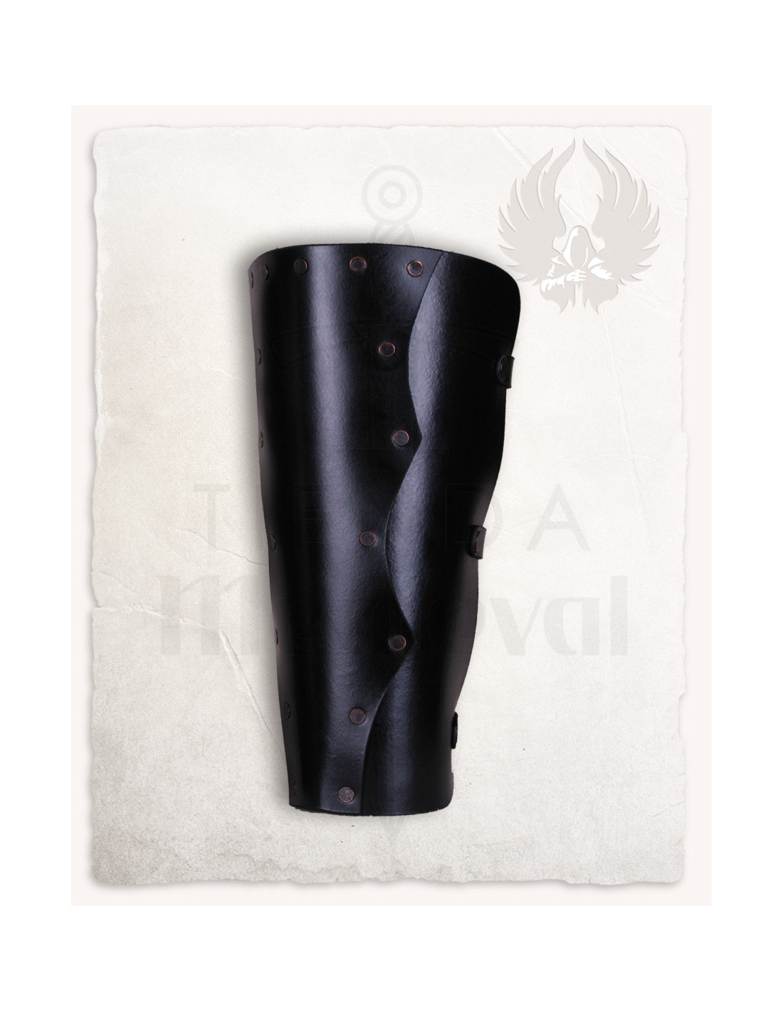 Gemaakt van hoogwaardig gesplitst leer, bieden ze een zachte en duurzame textuur die duurzaamheid en comfort combineert bij elk gebruik. Het gebogen ontwerp volgt de contour van de arm, waardoor mobiliteit wordt vergemakkelijkt en ongemak tijdens lange dagen of recreatieve gevechten wordt voorkomen. Bovendien worden ze verkocht per paar, zodat je een harmonieus en compleet geheel kunt creëren. De klassieke en robuuste esthetiek van deze armbanden maakt ze ideaal voor thematische evenementen, cosplay of om je middeleeuwse look te versterken, met een vleugje autoriteit en karakter.