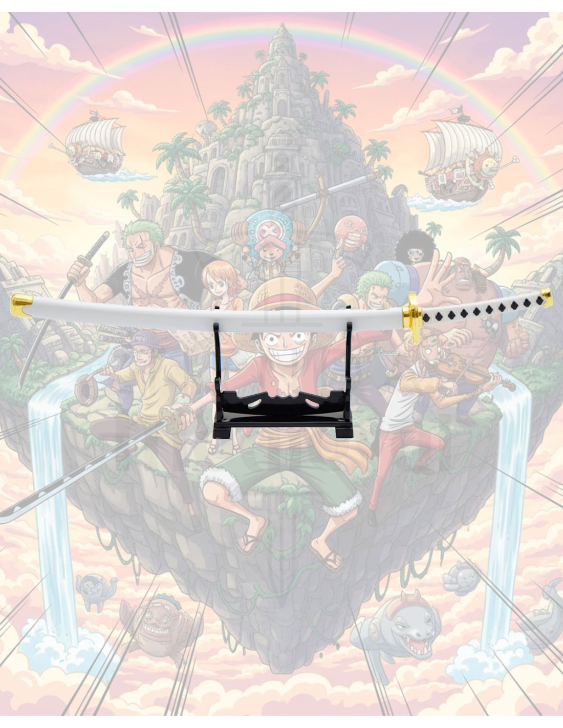 Roronoa Zoro, een van de meest iconische personages van One Piece, maakte de Wado Ichimonji tot een symbool van trouw en meesterschap met het zwaard. Deze ornamentale replica vangt deze connectie, waardoor fans de mogelijkheid krijgen om een herinnering uit het universum dat generaties heeft gemarkeerd dichtbij te hebben.
