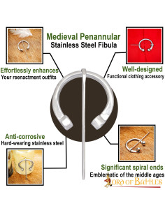 De Romeinse roestvrijstalen fibula is een schat van het merk Lord of Battles, erkend voor zijn uitstekende kwaliteit en aandacht voor detail in al zijn producten. Ontworpen om de tand des tijds te doorstaan, zal deze fibula een sleutelstuk worden in uw collectie historische accessoires.