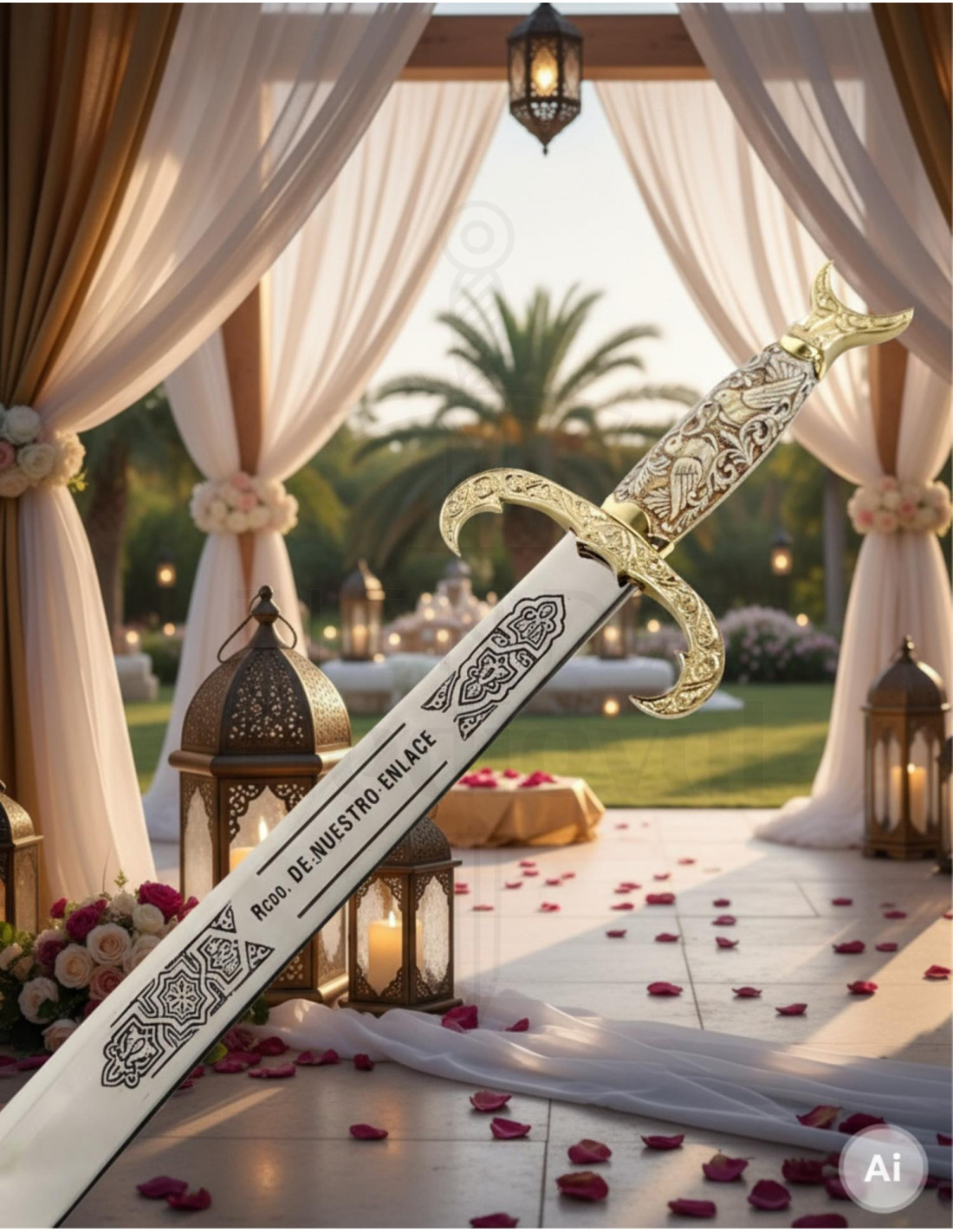 Dit zwaard wordt standaard geleverd met de gegraveerde tekst: "RDO. DE NUESTRO ENLACE", zodat je die bijzondere dag altijd zult herinneren. Bovendien is hij verkrijgbaar in drie verschillende maten: Naturel, Cadet en Kinderen, om aan uw behoeften aan te passen.