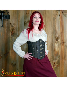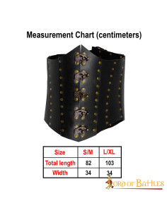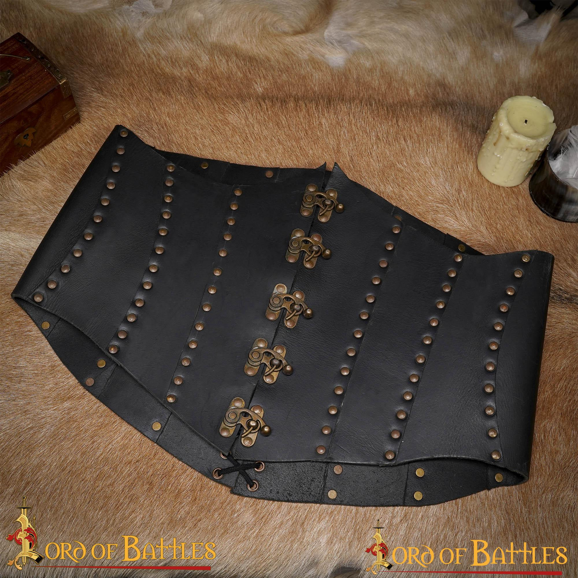 Anne Bony Zwart Piraat Leren Corset HANDGEMAAKT van ECHT LEER, deze brede riem is extreem duurzaam en gaat jaren mee. De eenvoudige en functionele sluiting van de verouderde sloten van puur messing draagt bij aan de vintage look. Verouderde koperen klinknagels houden de stevige constructie bij elkaar, waardoor het er perfect uitziet voor zowel LARP als cosplay. Het is verkrijgbaar in twee maten: S/M en L/XL. HET KORSET WORDT, ALS HET PLAT IS, GEMETEN ZOALS AANGEGEVEN IN DE MAATTABEL BIJ DE FOTO'S.