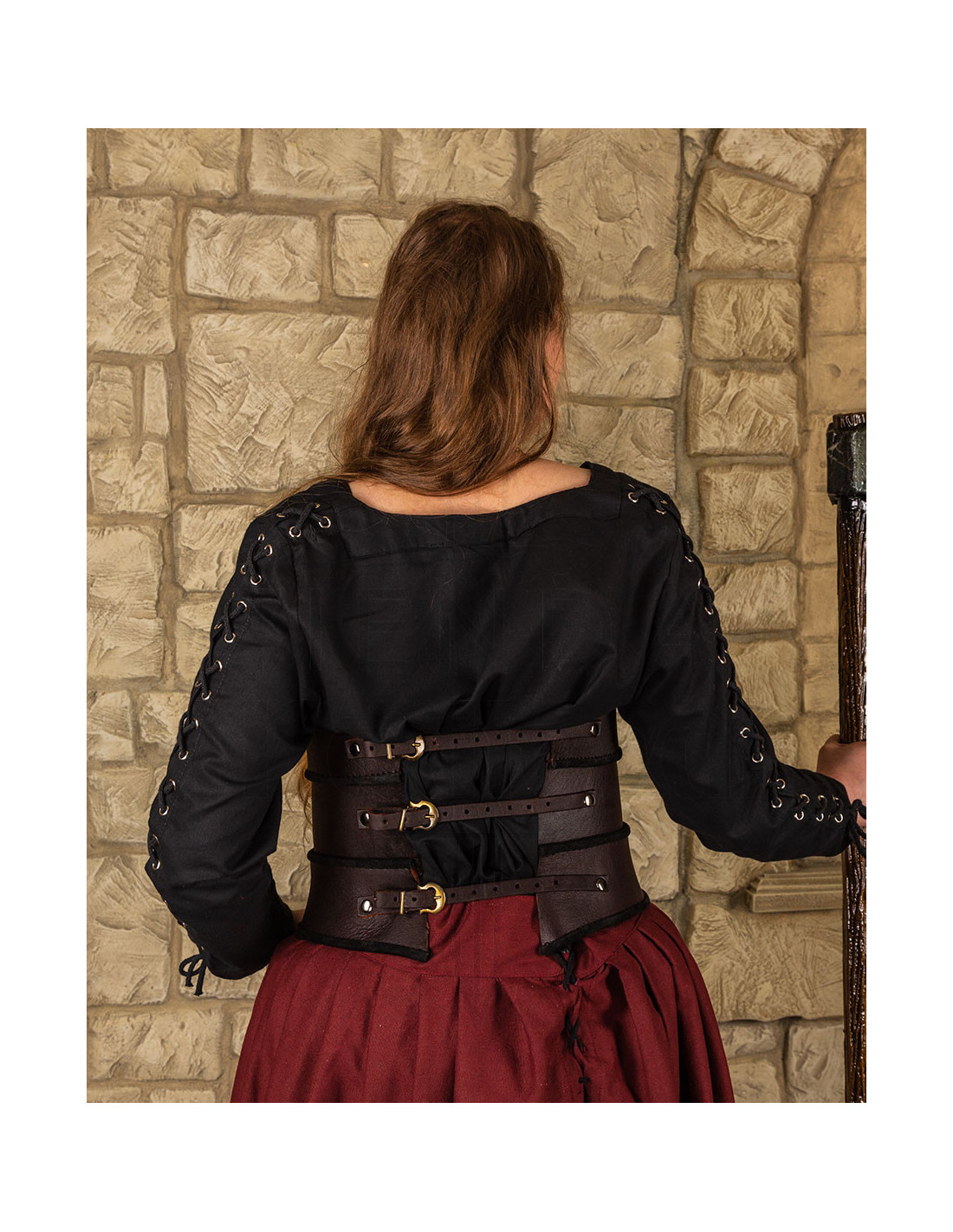 Ben je klaar om je look te transformeren met een authentiek middeleeuws accent vol karakter? Dit indrukwekkende leren bustier in bruin, model 'Scarlet', is veel meer dan een kledingstuk: het is een stijlverklaring en krachtuitdrukking.