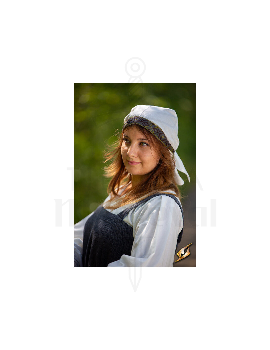 Gemaakt van zacht katoen biedt deze hoofddoek een aangename textuur en een authentieke uitstraling die je toewijding aan de sfeer en precisie benadrukt. De centrale band, verrijkt met borduursel, voegt een verfijnd detail toe, perfect voor personages die nederigheid en onderscheid willen combineren, van boeren tot geheime dames. Het stevige, gemakkelijk te hanteren stofje zal je urenlang begeleiden tijdens recreaties, thematische evenementen of LARP, zodat je je houding en stijl comfortabel kunt behouden.