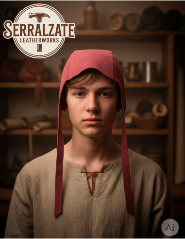 ¡Geef een authentieke touch aan je middeleeuwse garderobe met deze elegante leren kapelina, ontworpen voor liefhebbers van geschiedenis en avontuur! Gemaakt van zachte bordeauxsuède, combineert dit stuk comfort en stijl, waardoor je eruitziet als een echte middeleeuwse ridder of dame.