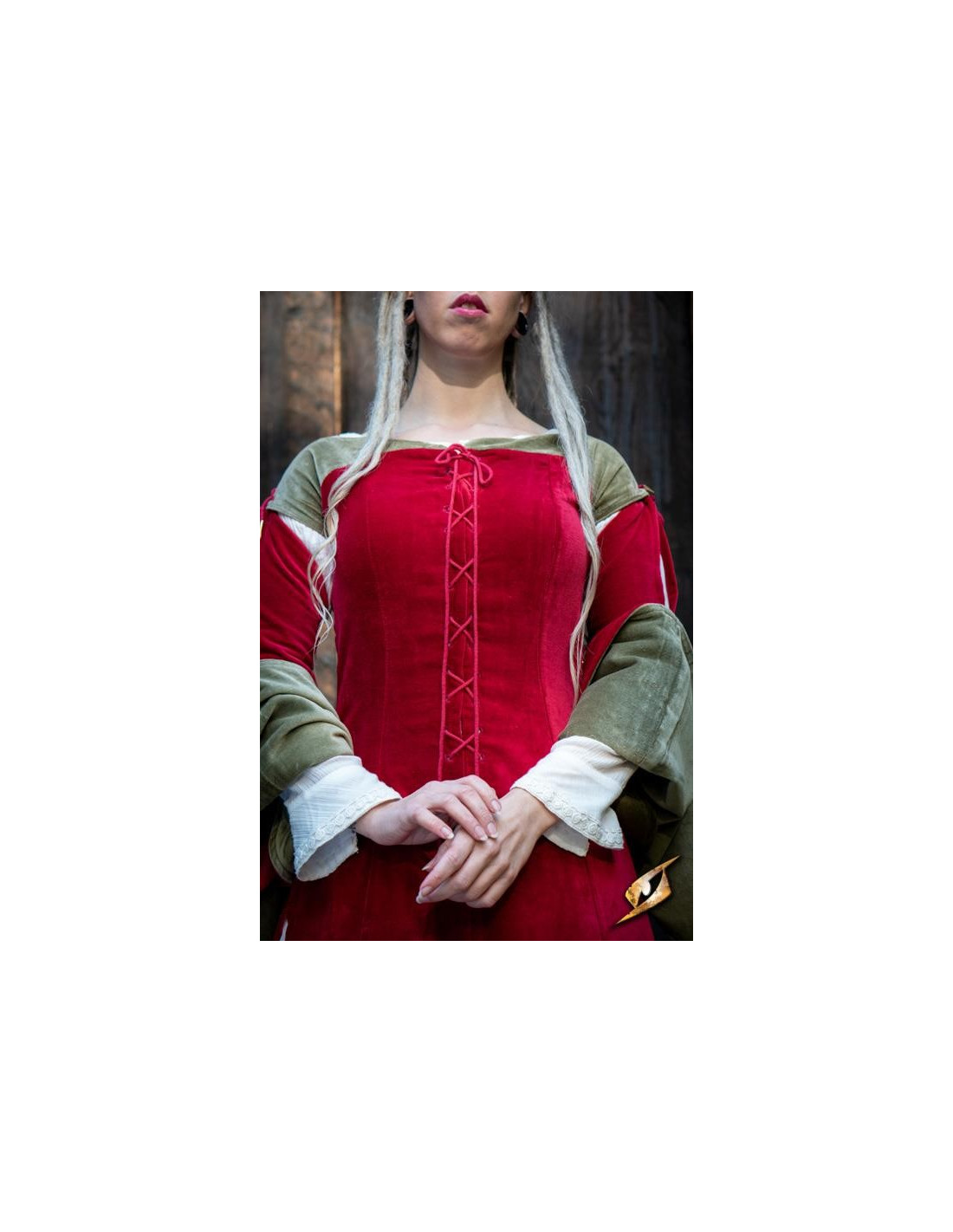 Ook de manier waarop de jurk vastzit is opmerkelijk. De veters aan de voorkant voegen niet alleen een vleugje authenticiteit en middeleeuwse stijl toe, maar zorgen er ook voor dat je de jurk op jouw maat kunt aanpassen, zodat je je altijd zelfverzekerd en comfortabel voelt.