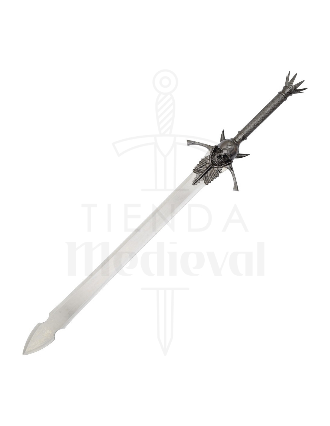 Het ontwerp is niet alleen esthetisch; het maakt ook de ervaring gemakkelijker: de donkere, getextureerde handgreep biedt een stevige grip om het veilig vast te houden of tentoon te stellen, terwijl de garde versierd met een schedel en ribben, en de zijstevigen, karakter en een theatrale uitstraling toevoegen die elke foto of display verbeterd. De kroon van stekels aan de punt van de handgreep voegt die dramatische afwerking toe die zijn gotische en decoratieve stijl definieert.