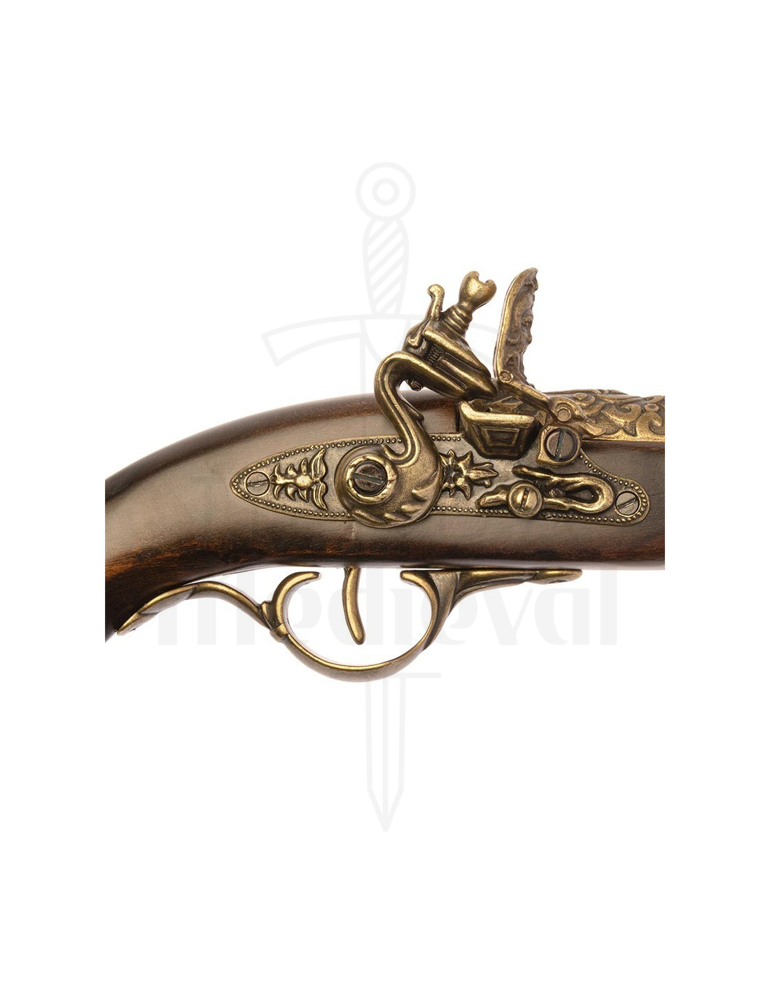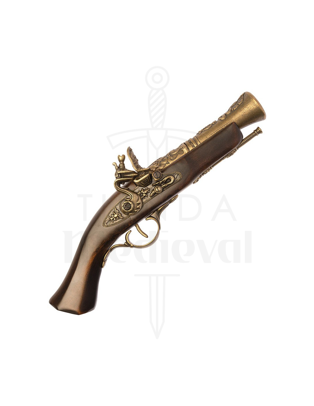 Mis de kans niet om dit met messing beklede vuursteen-donderbuspistool in handen te krijgen en een vleugje geschiedenis en stijl aan je collectie toe te voegen. Krijg haar nu!