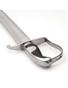 Het gevest van de sabel is een exacte replica van het origineel, met een stalen beschermkap en een voorgevormd, geribbeld leren handvat. Deze grip geeft je niet alleen een authentieke uitstraling, maar zorgt ook voor een comfortabele en veilige grip tijdens het gebruik. Bovendien wordt de sabel compleet geleverd met een prachtig gereproduceerde stalen schede, waardoor hij gemakkelijk kan worden opgeborgen en vervoerd.