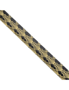 Diseñada pensando en la experiencia, su mango presenta un acabado texturizado que facilita el agarre y un patrón blanco con vetas que recuerda a materiales nobles, aportando elegancia y sensación segura al tocarla. Las piezas metálicas doradas en guarda y pomo elevan su aspecto, ofreciendo unidad estética y un acabado llamativo que resalta en cualquier colección.