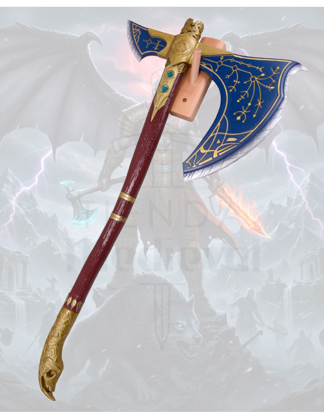 Het wordt geleverd met een houten standaard die is ontworpen om de bijl eenvoudig op te hangen en tentoon te stellen, zodat deze vanaf het eerste moment zichtbaar is, zonder ingewikkelde aanpassingen. Het resultaat is een object dat dient als gespreksonderwerp, thematische decoratie en eerbetoon aan een erkende saga.