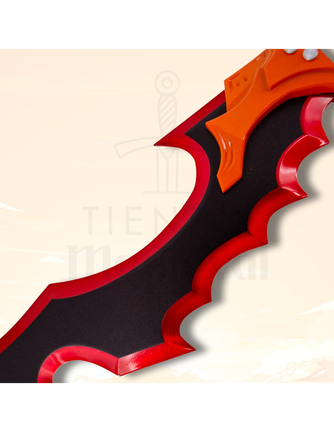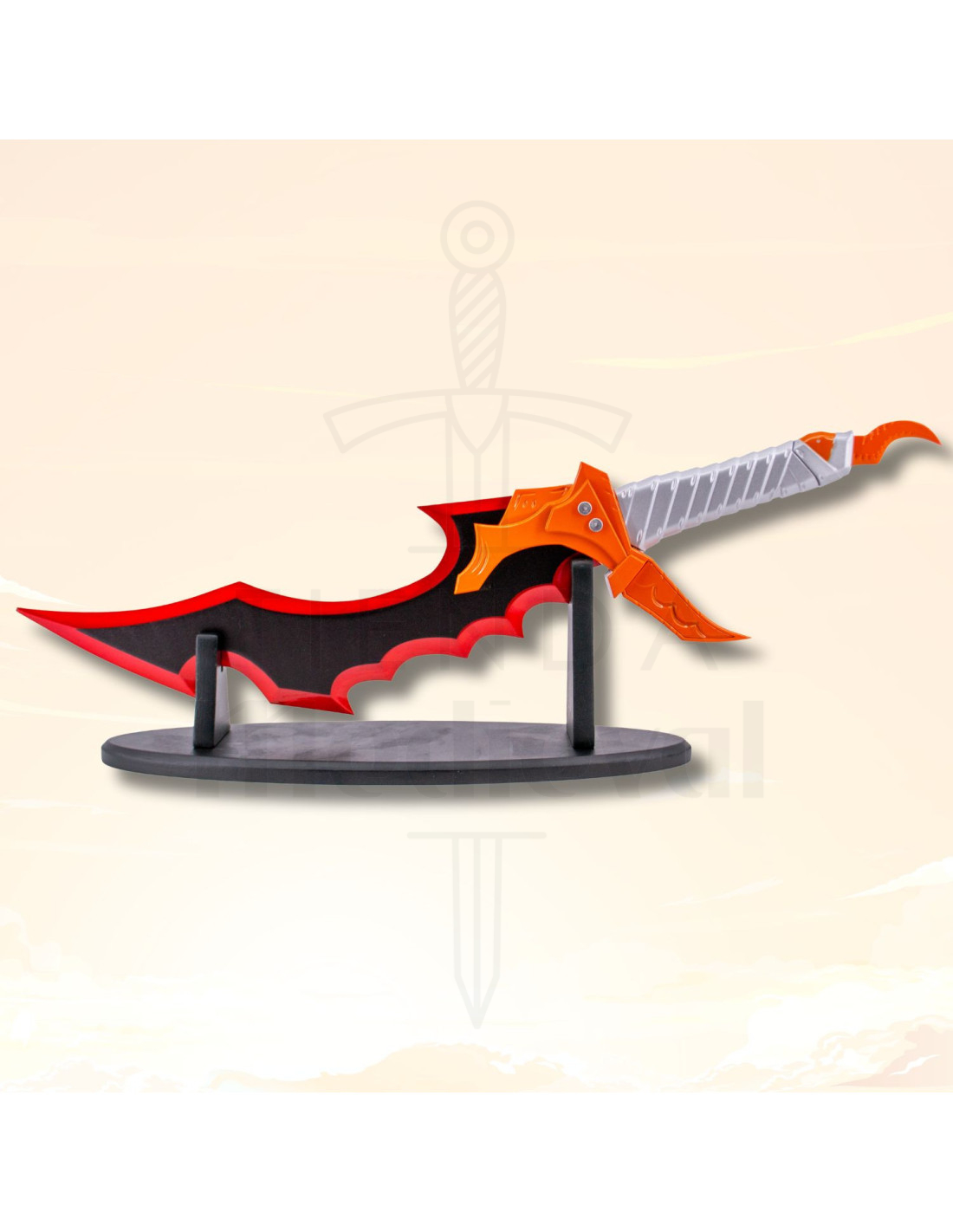 Ben je op zoek naar een epische touch voor je collectie of kostuum? Deze sierlijke «Knight Killer»-dolk geïnspireerd door Solo Leveling biedt een opvallend en opvallend ontwerp dat meteen in het oog springt. Met een totale lengte van 55 cm en een lemmet van 34 cm, versierd in zwart met een rode rand die zijn agressieve karakter benadrukt, is deze niet-officiële replica perfect om te tonen in je ruimte of je outfit aan te vullen.