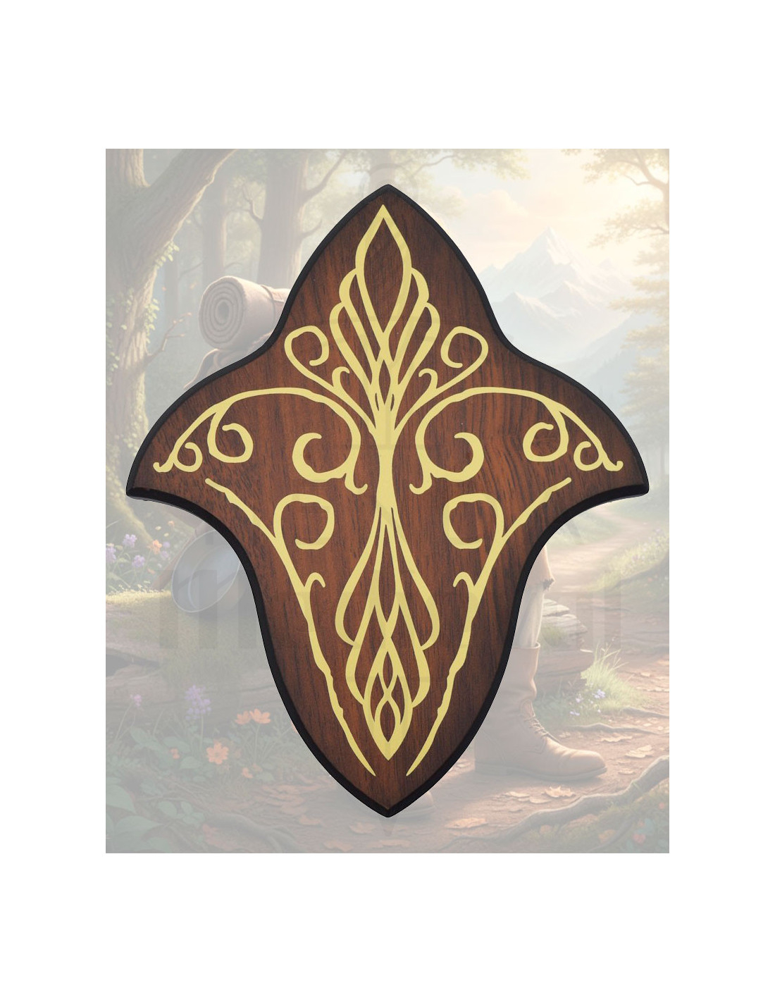 Het wordt geleverd met een houten wandsteun die het vanaf dag één gemakkelijk te exposeren maakt, waardoor elke muur in een klein herdenkingsaltaar wordt omgevormd. Bovendien voegt een decoratief motief in donker hout met gouden gravure een onderscheidend handtekening toe, perfect voor wie de handgemaakte details van stukken geïnspireerd op verhalende werelden waardeert.