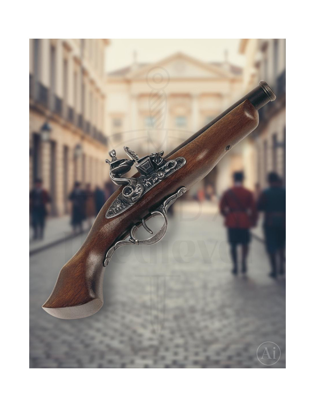 Ontdek de elegantie en charme van de 17e eeuw met het Brescia Flint Pistol. Dit pistool, oorspronkelijk afkomstig uit Brescia, Italië, is een echt historisch juweeltje dat je meeneemt naar een tijd vol avontuur en ridderlijkheid.