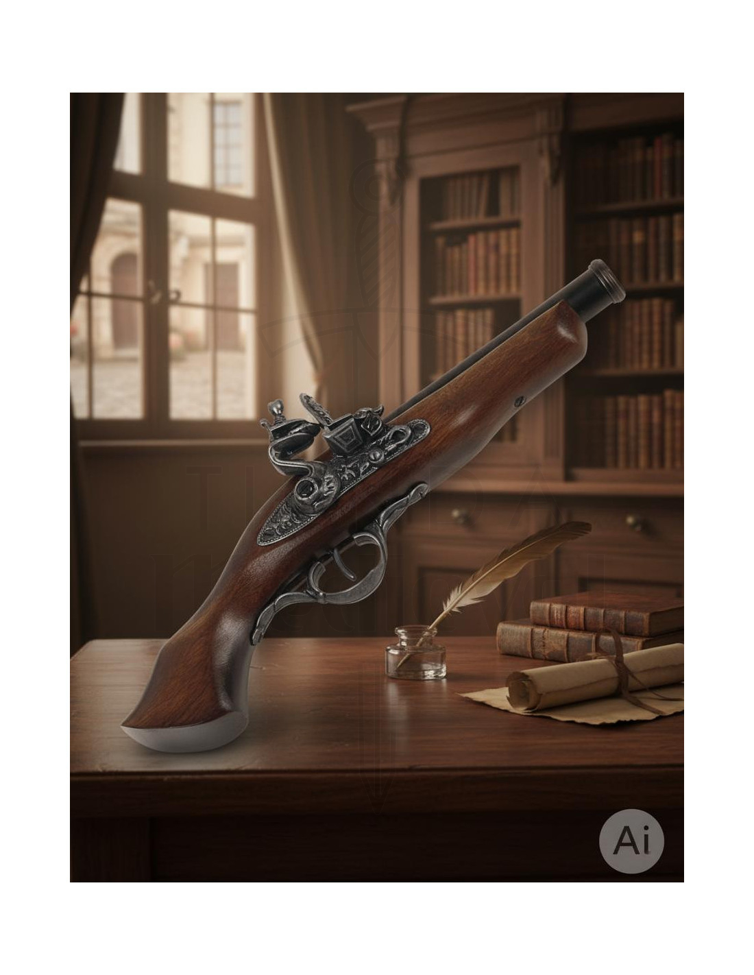 Mis de kans niet om een authentiek 17e-eeuws Brescia-vuursteenpistool te bezitten. Koop de jouwe en voeg een vleugje geschiedenis toe aan je leven!