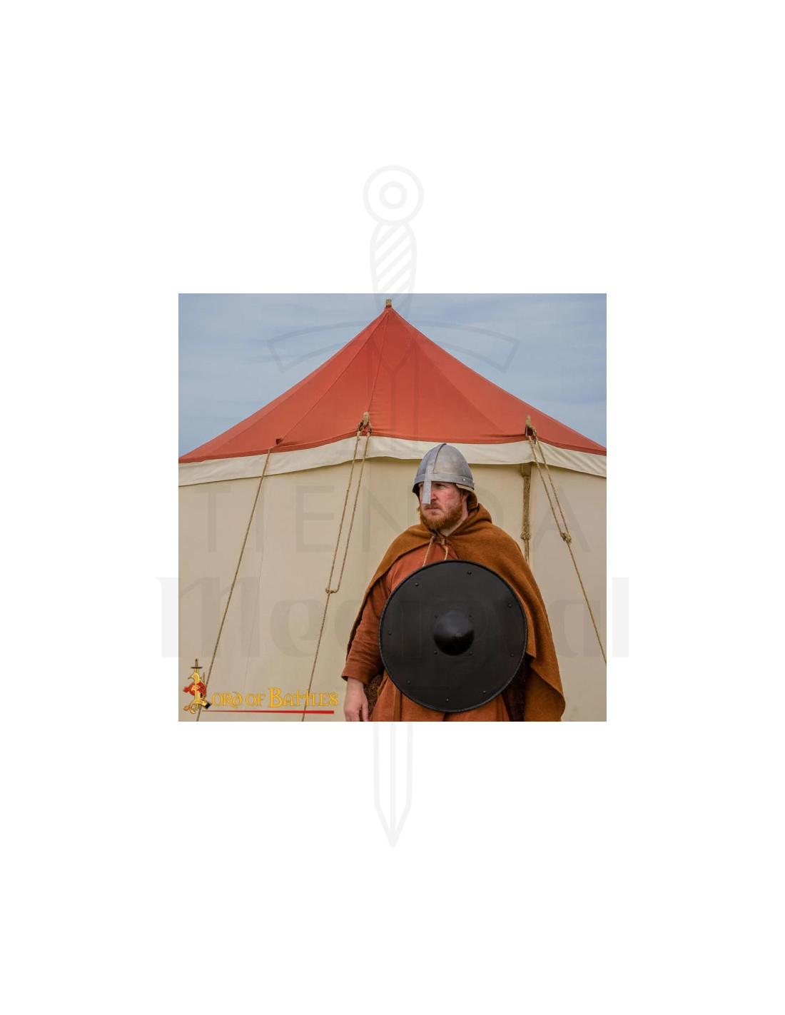 De houten achterkant biedt een stevige en stabiele grip, waardoor snelle verandering van houding en controle tijdens trainingen of scènes eenvoudig is. Omdat het een handgemaakt stuk is, vertoont elke eenheid kleine variaties in de afwerking, waardoor jouw schild uniek is, met dat authentieke karakter dat verzamelaars en reenactors waarderen.