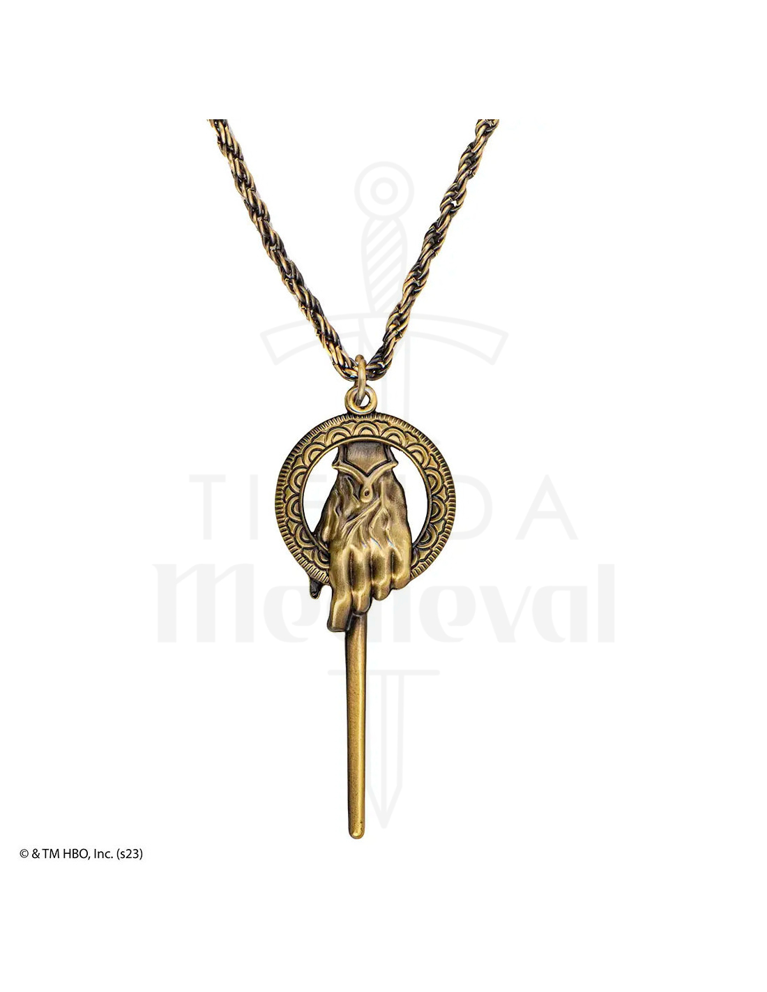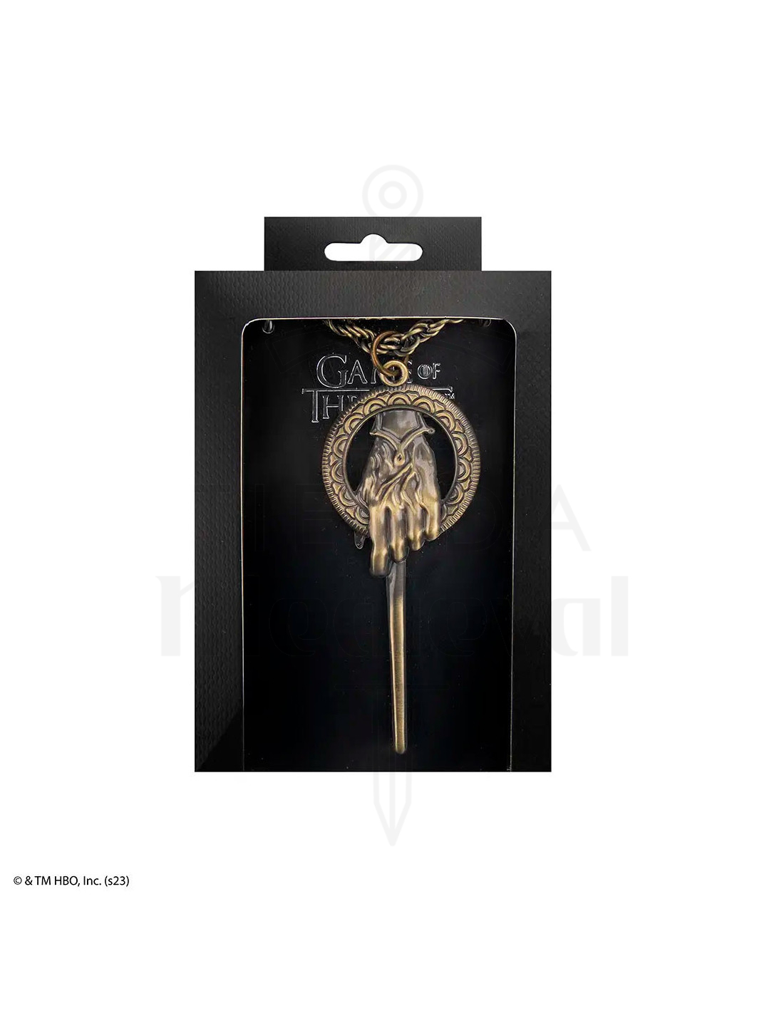 Elke Hand of the King-hanger is gemaakt met een stevige ijzeren ketting en een hanger van zinklegering, wat duurzaamheid en een gedetailleerde afwerking garandeert. De hanger is voorzien van de gouden hand, een onderscheidend ambtssymbool dat de autoriteit en verantwoordelijkheid van de drager vertegenwoordigt. Deze gouden hand symboliseert de macht en invloed die de Hand van de Koning over het koninkrijk uitoefent, evenals de offers en persoonlijke gevolgen die met deze positie gepaard gaan.