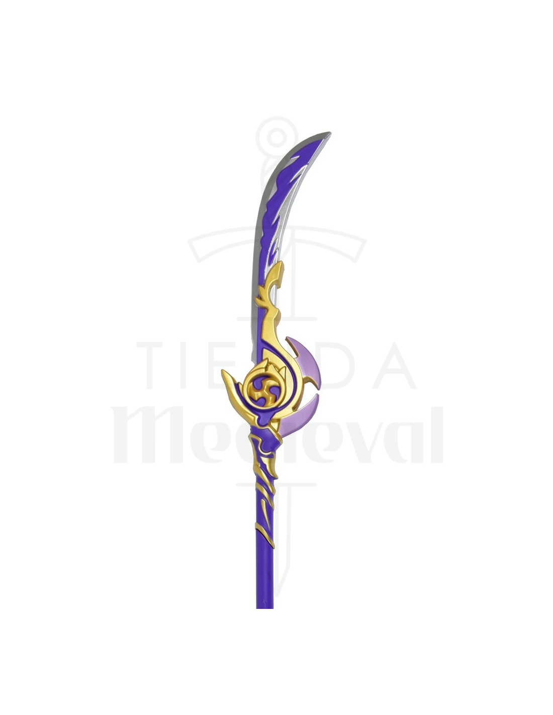 Het Decoratieve Zwaard Engulfing Lightning van Genshin Impact is een indrukwekkende en trouwe replica van het legendarische wapen dat door Raiden Shogun, de Electro-deiteit van Inazuma, wordt gehanteerd. Deze lans, bekend om zijn vernietigende kracht en zijn associatie met het element elektriciteit, is een iconisch stuk in de geschiedenis van Teyvat, dat de kracht en vastberadenheid van de Shogun weerspiegelt.
