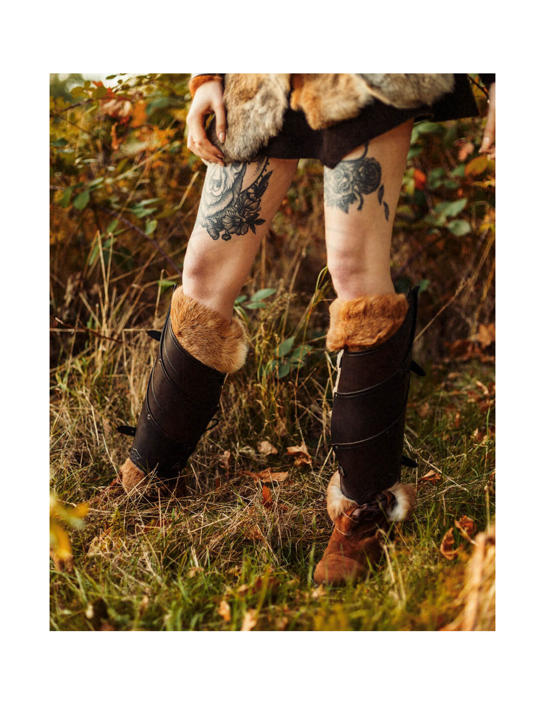 Ben je op zoek naar een gedurfde en elegante touch om je historische outfit compleet te maken? Deze middeleeuwse scheenbeschermers van leer, model Lilith, zijn de perfecte keuze voor wie op elke strijd wil opvallen, of het nu gaat om een cosplay-evenement of een historische recreatie.