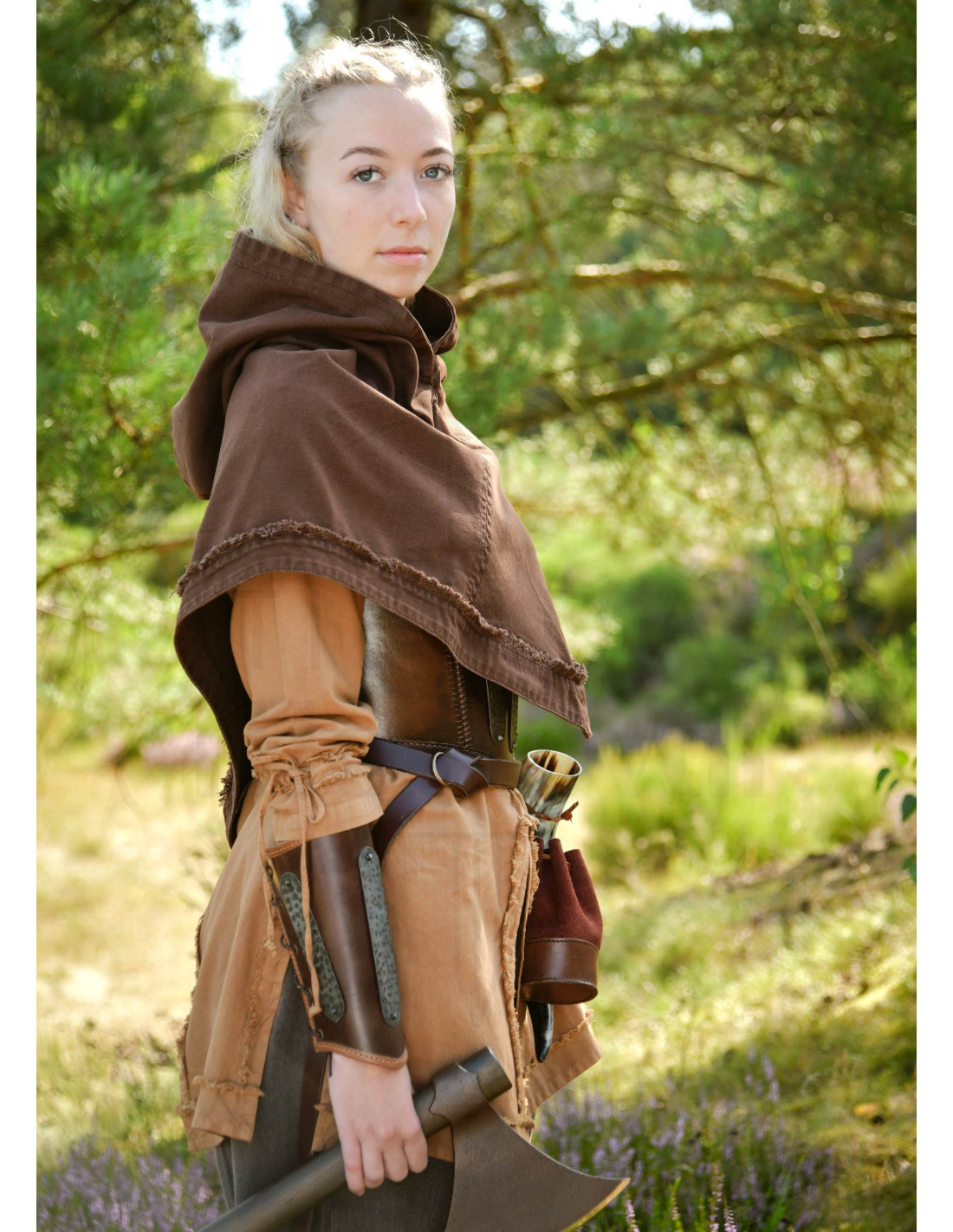 Deze kap biedt niet alleen bescherming tegen de kou, maar voegt ook dat vleugje geschiedenis en avontuur toe aan je outfit. Of je nu gekleed gaat als een robuuste koopman, een mysterieuze zwerver of een dappere krijger, de gugel Stig brengt je look naar een wereld vol verhalen en legendes.