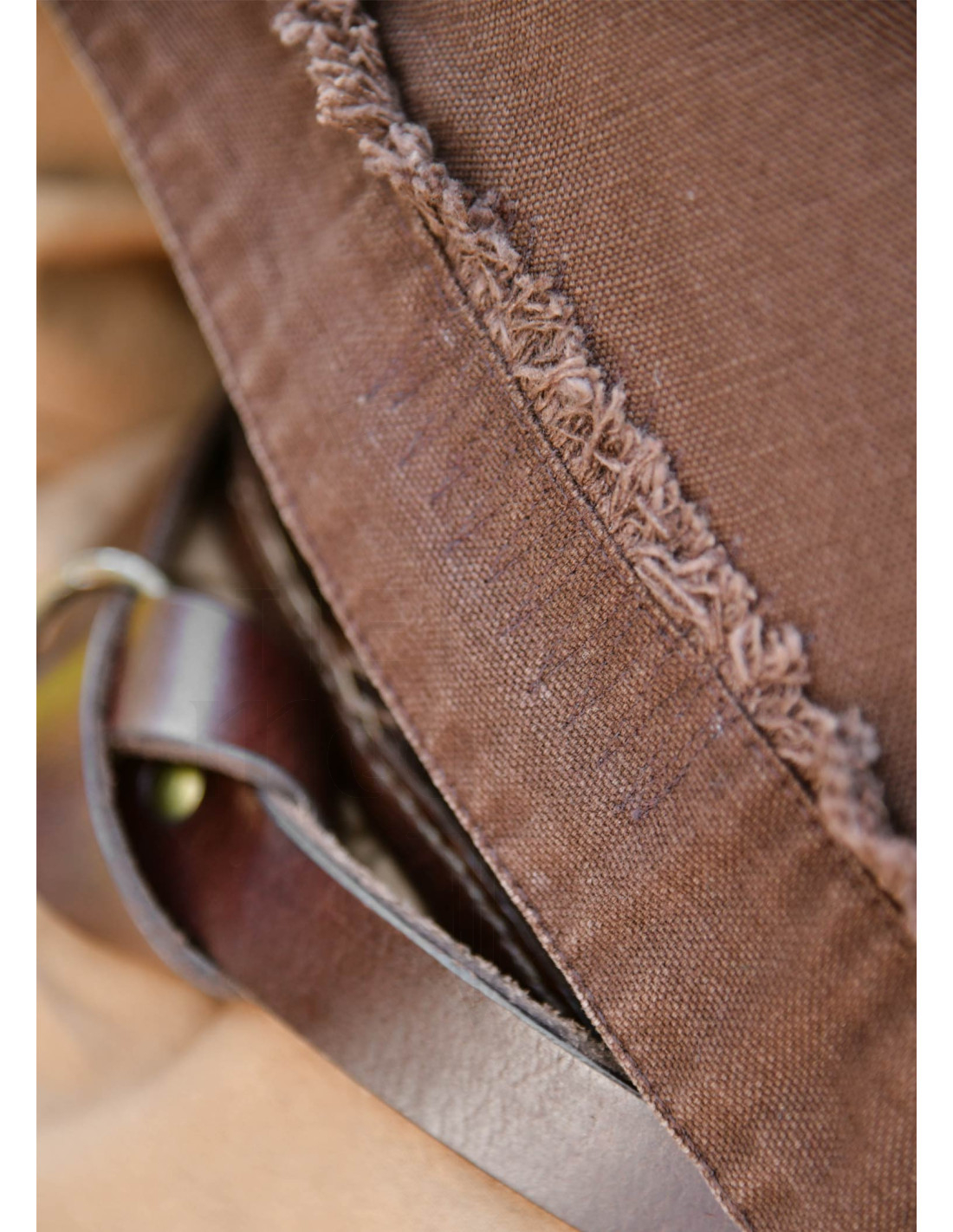 Gemaakt van 100% katoen combineert deze gugel duurzaamheid met een rustieke stijl die met karakter zal verouderen. Het ontwerp bevat versleten randen en zichtbare naden, die het gewicht van vele avonturen lijken te dragen. De driehoekige vorm, met een rafelige afwerking en een inzet op de borst, verwijst naar oude vondsten en geeft een onderscheidend en evocatief accent aan elke middeleeuwse of LARP-outfit.