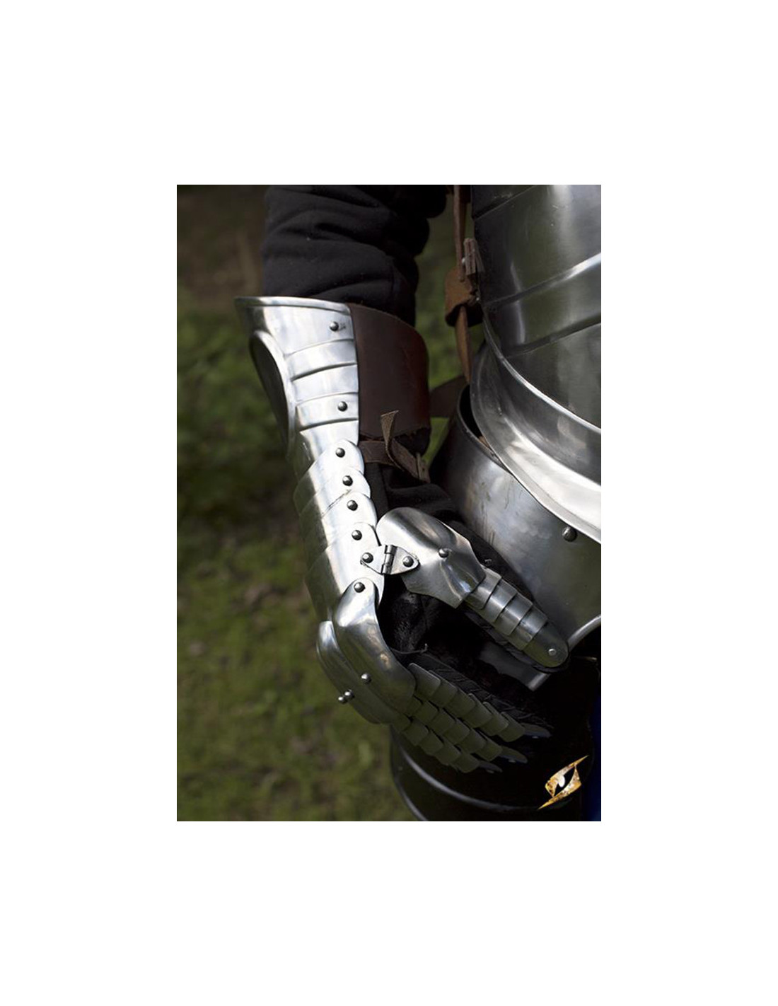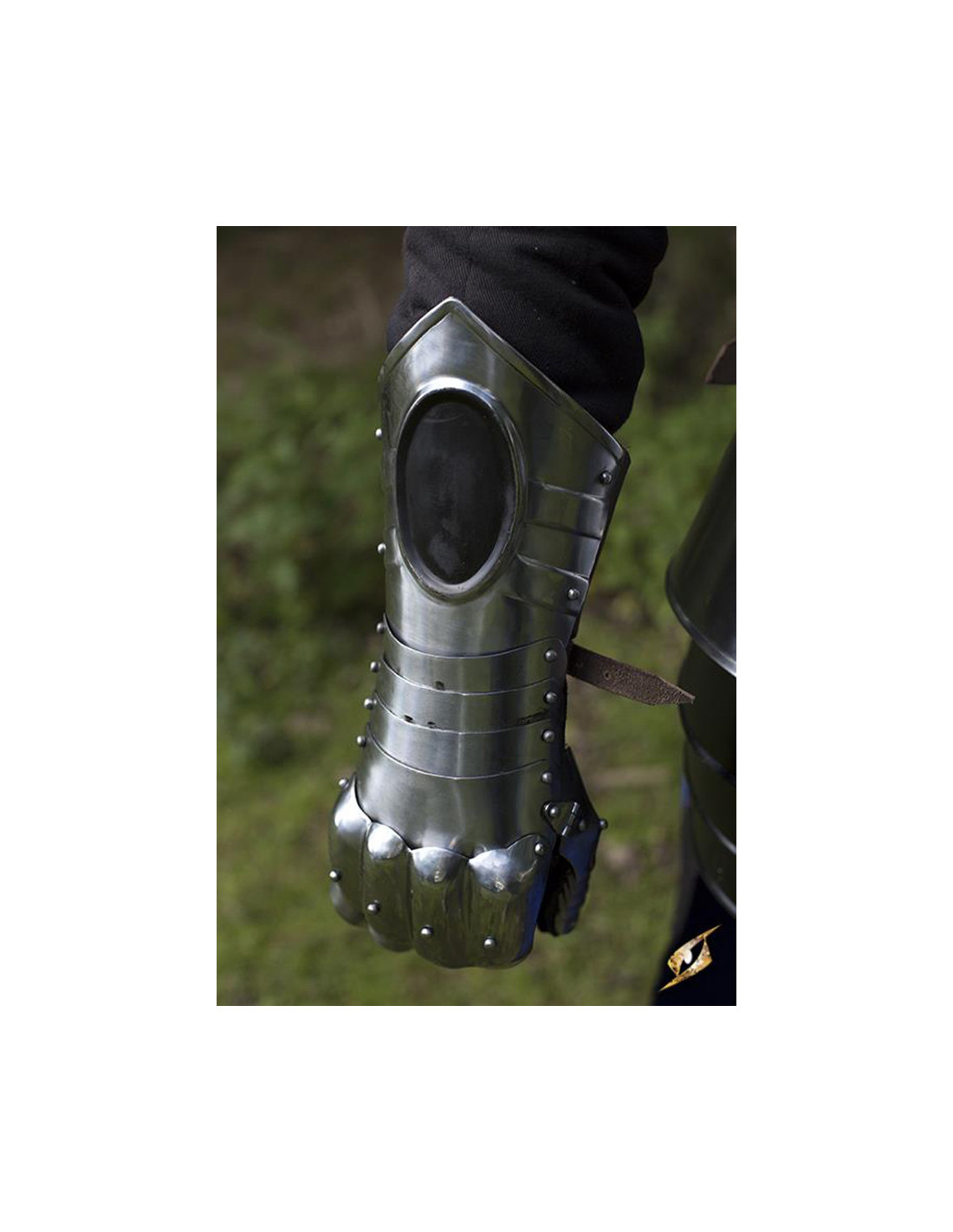 Ze zijn essentieel voor iedereen die zijn handen wil beschermen tijdens gevechten. Deze handschoenen bestaan uit scharnierende platen en beschermen de vingers, knokkels, polsen en onderarmen zonder aan mobiliteit in te boeten. Deze handschoenen zijn afgewerkt met geborsteld staal en zwarte verf en hebben een sobere stijl die ideaal is voor een donker en serieus personage met slechte bedoelingen. Hoewel het speciaal is ontworpen voor de groep personages, kun je dit pantser gerust gebruiken om bij je eigen personageontwerp te passen.