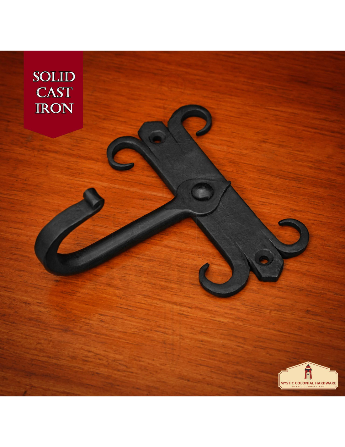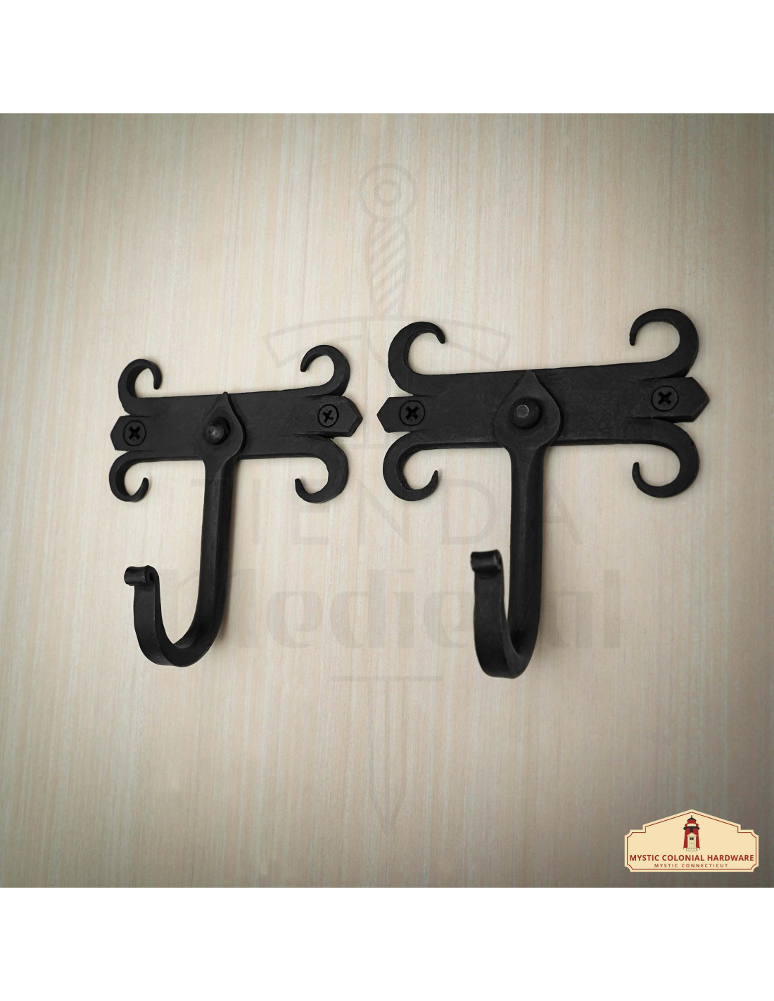 Afgewerkt in oliegewreven zwart, verkregen via traditionele oliezwartingsmethoden, heeft elke haak een onnavolgbare, rustieke uitstraling die de essentie van het vakmanschap van weleer weergeeft. Dit proces verfraait niet alleen elk stuk in traditionele stijl, maar beschermt het ook tegen slijtage, waardoor de schoonheid ervan lang meegaat.