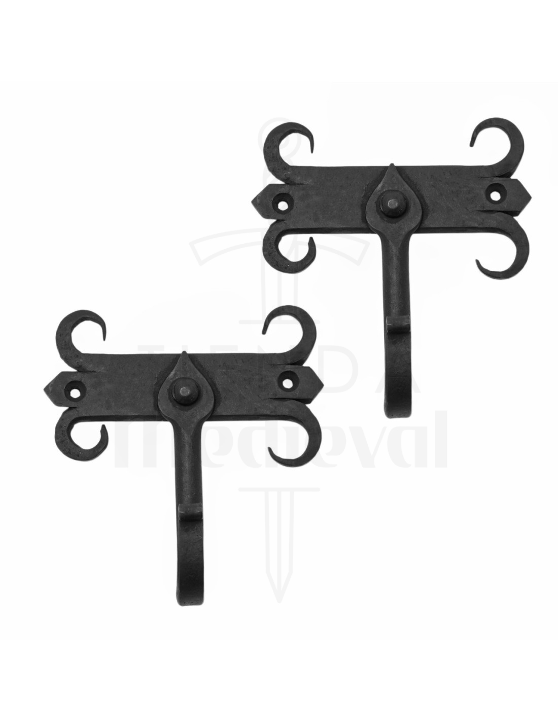 Mis de kans niet om deze smeedijzeren muurbeugels in uw decoratie te integreren. De set van 2 kledingophangbeugels is niet alleen een praktisch accessoire, maar een kunstwerk dat onderscheid en karakter aan elke ruimte zal toevoegen en bestand is tegen het verstrijken van de tijd en de voorbijgaande mode.