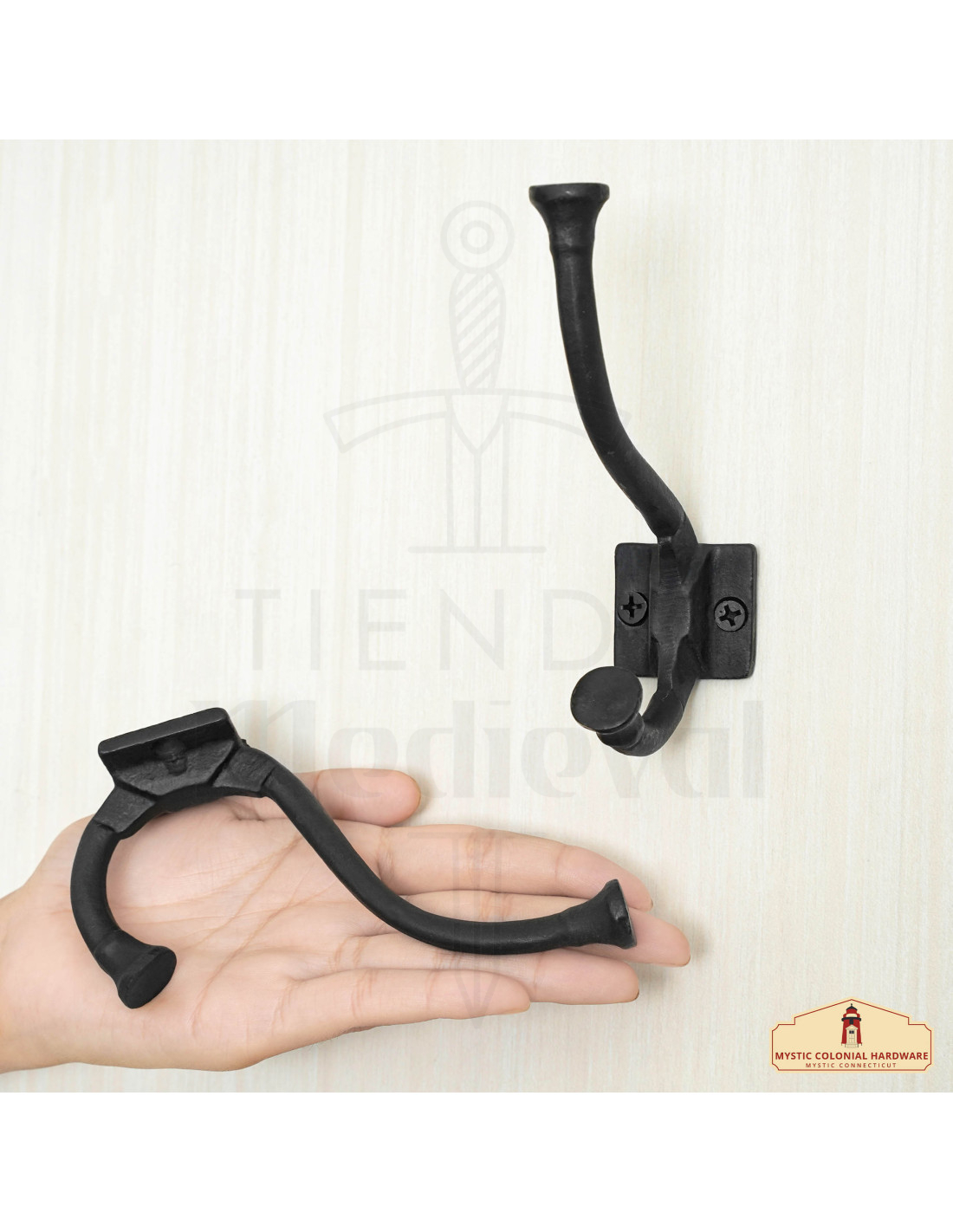 Transformeer de organisatie en stijl van uw ruimtes met de set van 2 haakvormige muurbeugels van Mystic Colonial Hardware. Deze praktische haken zijn perfect voor het ophangen van jassen, tassen, handdoeken, badjassen, hoeden en meer en combineren functionaliteit met een tijdloos, rustiek ontwerp. Deze ijzeren haken zijn vervaardigd uit smeedwerk en bieden uitzonderlijke duurzaamheid en weerstand, waardoor een veilige ondersteuning voor uw kostbaarste bezittingen wordt gegarandeerd.