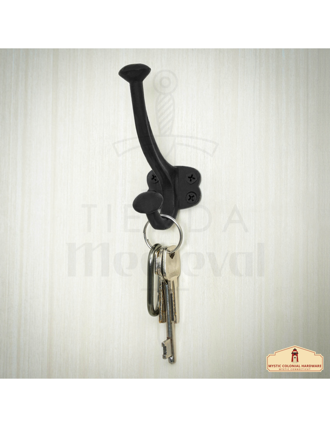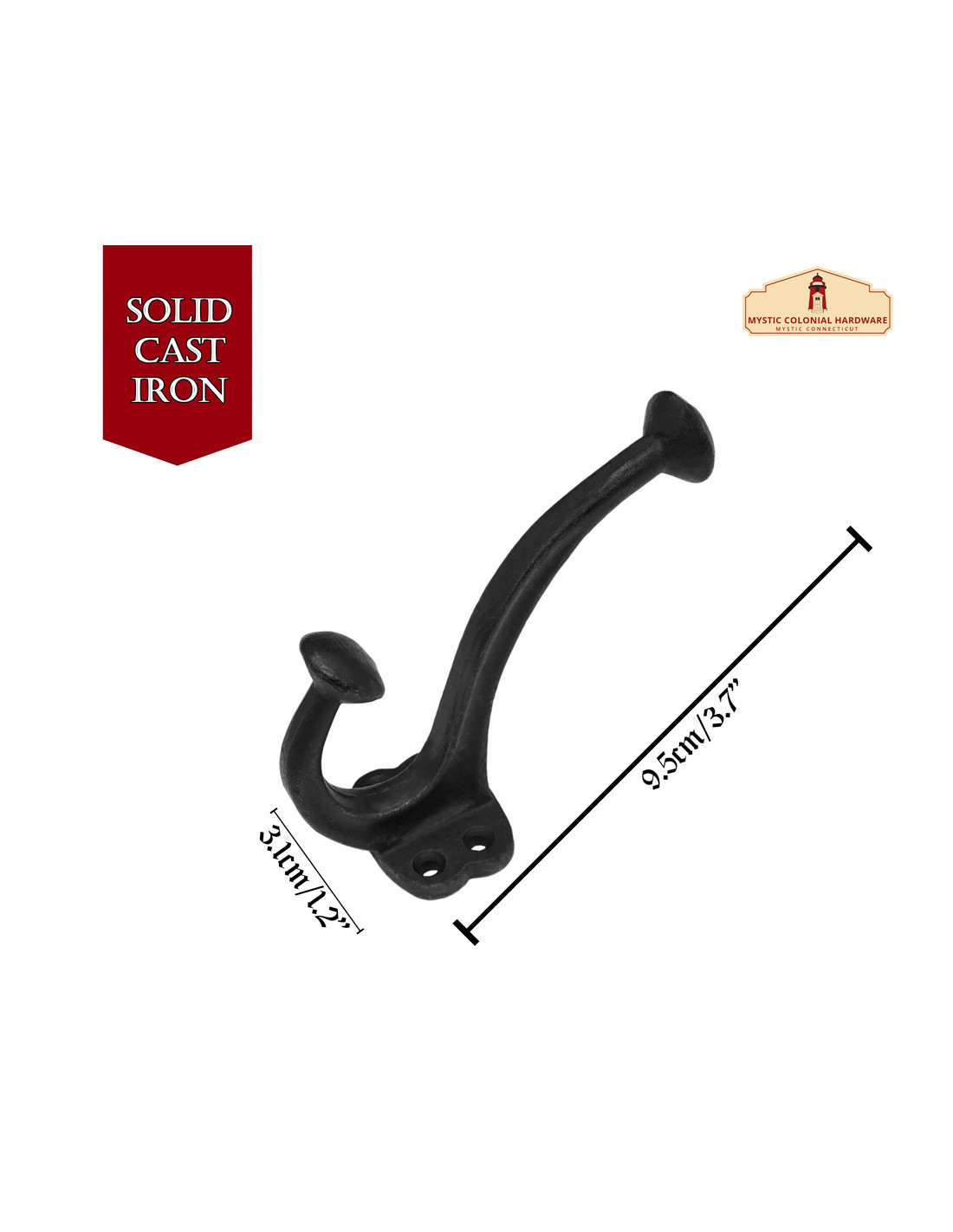 Deze haken zijn gemaakt van hoogwaardig gietijzer en zijn niet alleen duurzaam en stevig, maar voegen ook vintage charme toe aan elke ruimte. De oliezwarte afwerking benadrukt de textuur en het karakter van het gietijzer, waardoor een authentieke en tijdloze uitstraling ontstaat.
